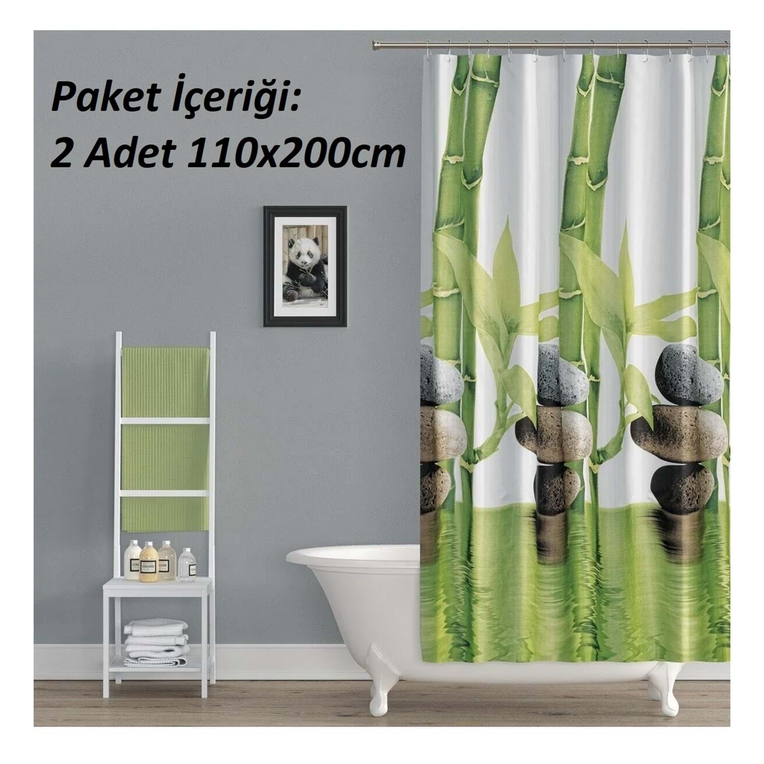 Tropik Home -Daisy Papatya- Çift Kanatlı Banyo Duş Perdesi (2x110x200)