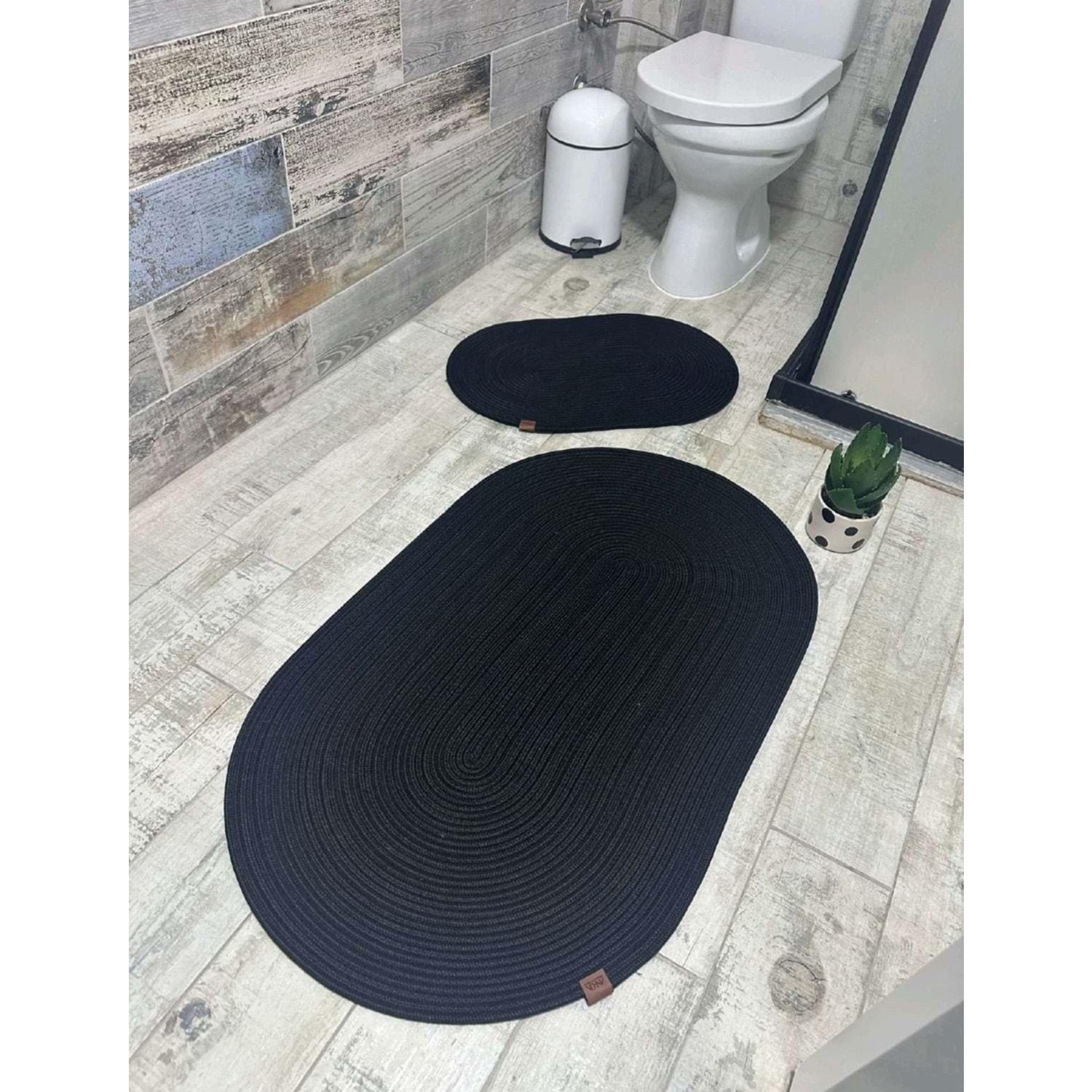 Jüt Hasır 2li Banyo Seti Paspas Takımı-Siyah