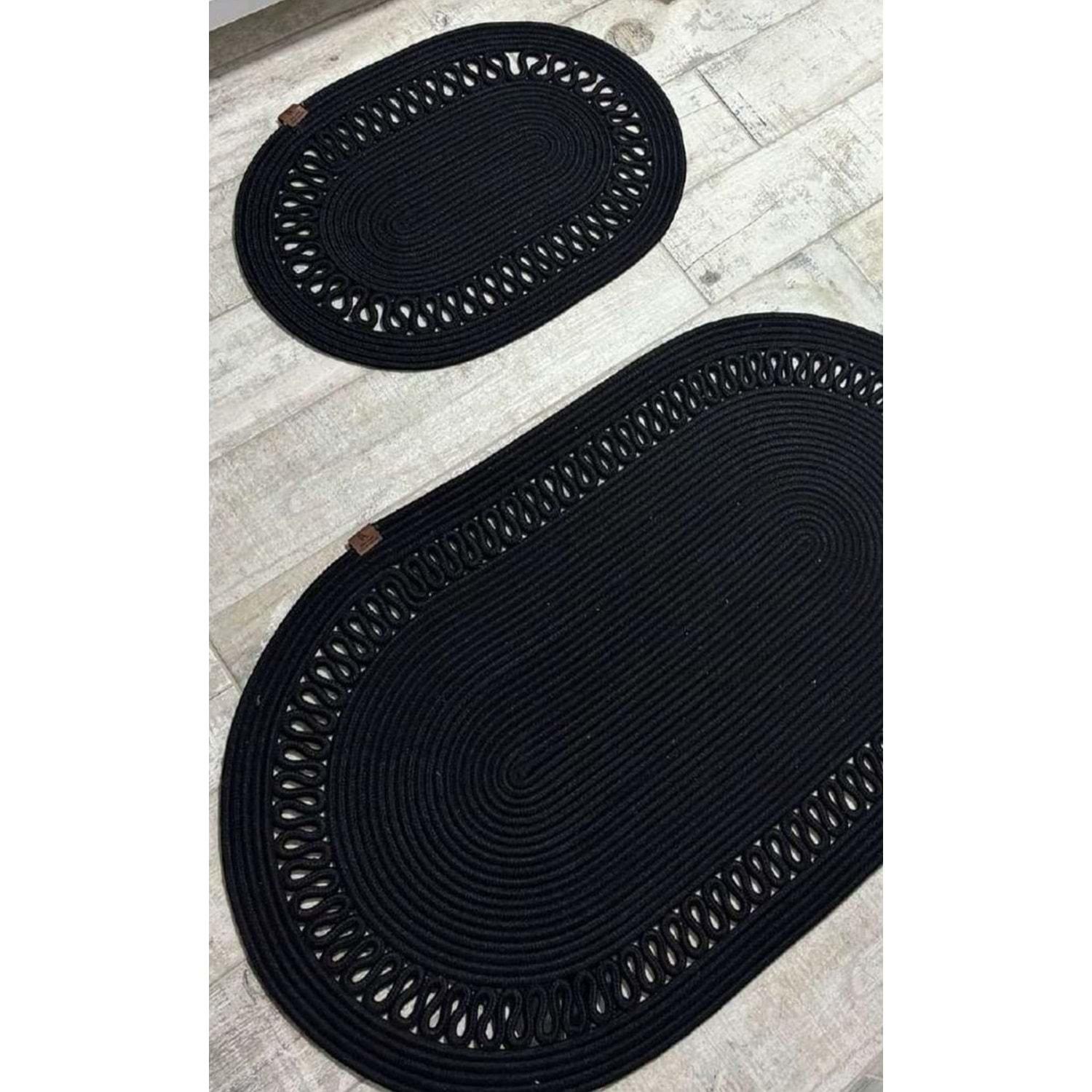 Jüt Hasır 2li Banyo Seti Paspas Takımı-Siyah Trikotlu