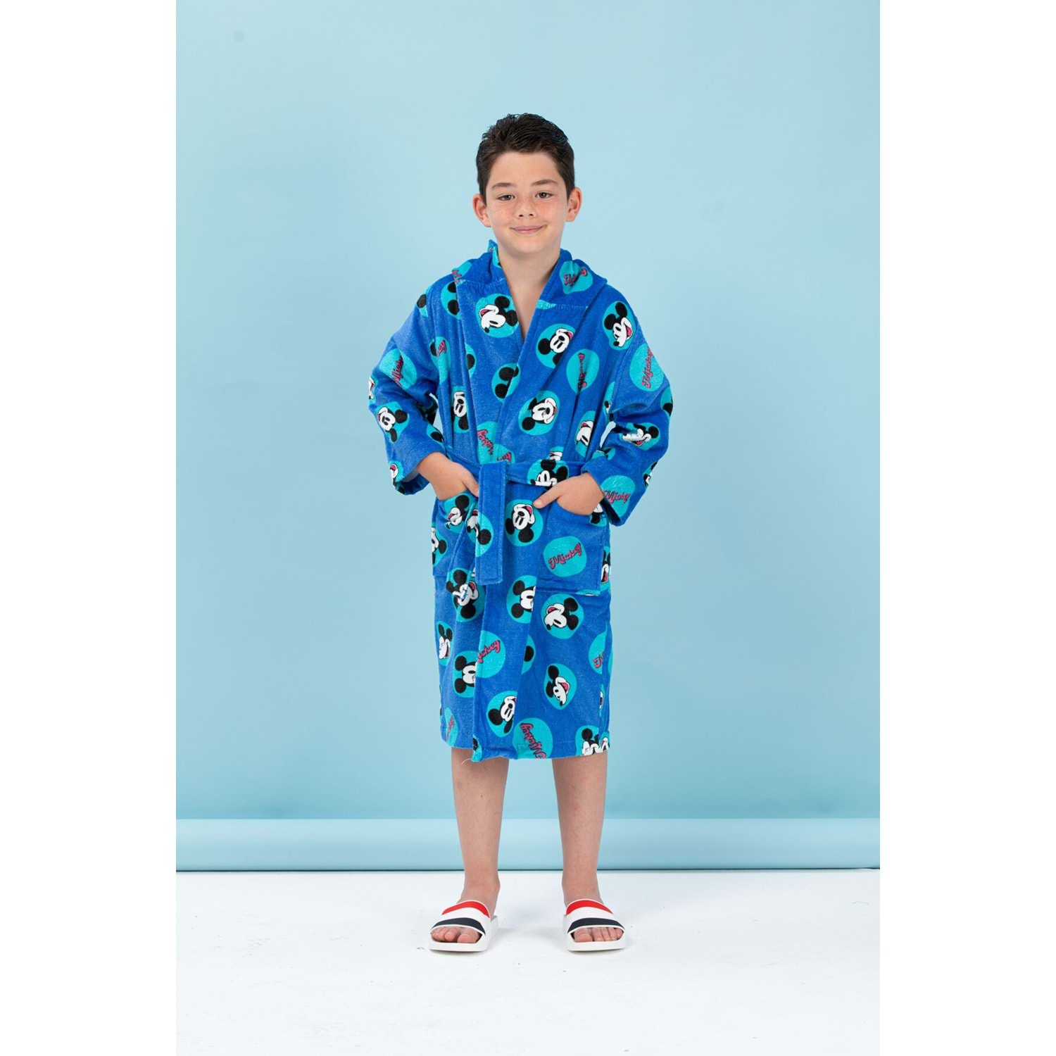 Özdilek Lisanslı Kapüşonlu Çocuk Bornozu 5/6 Yaş-Mickey Mouse Smile Mavi
