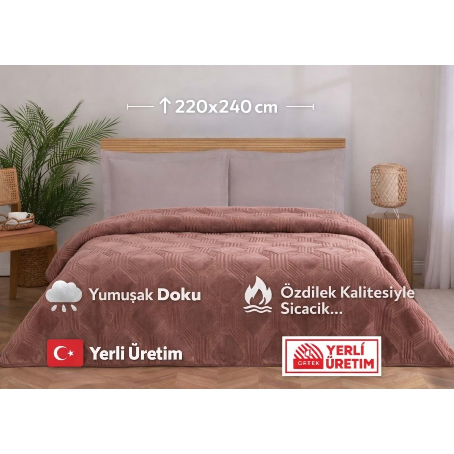 Özdilek Trendy Embos Çift Kişilik Battaniye (220x240)-Art Deco Sıcak Kahve Yeni