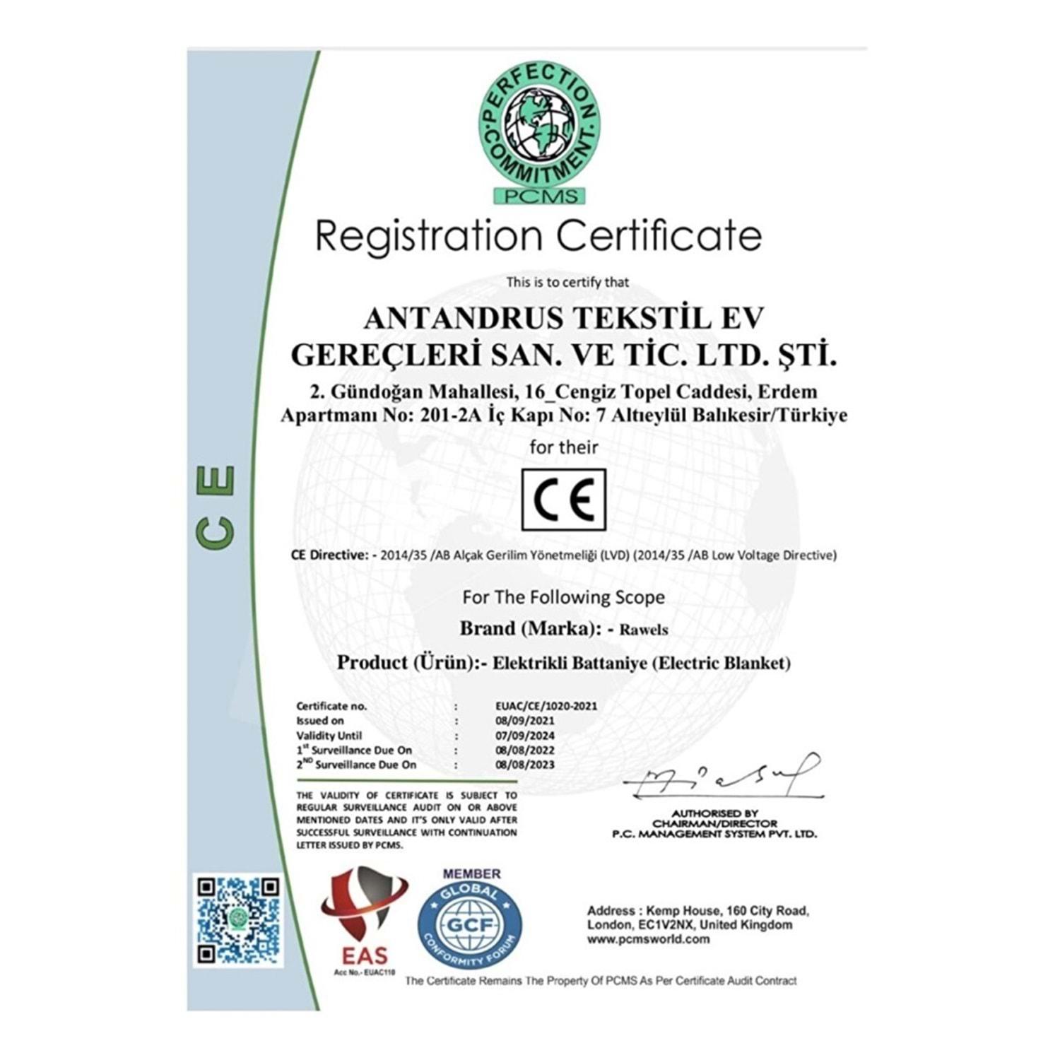 Rawels CE Kalite Belgeli Çift Kişilik Elektrikli Battaniye 120x160 - Sarıı