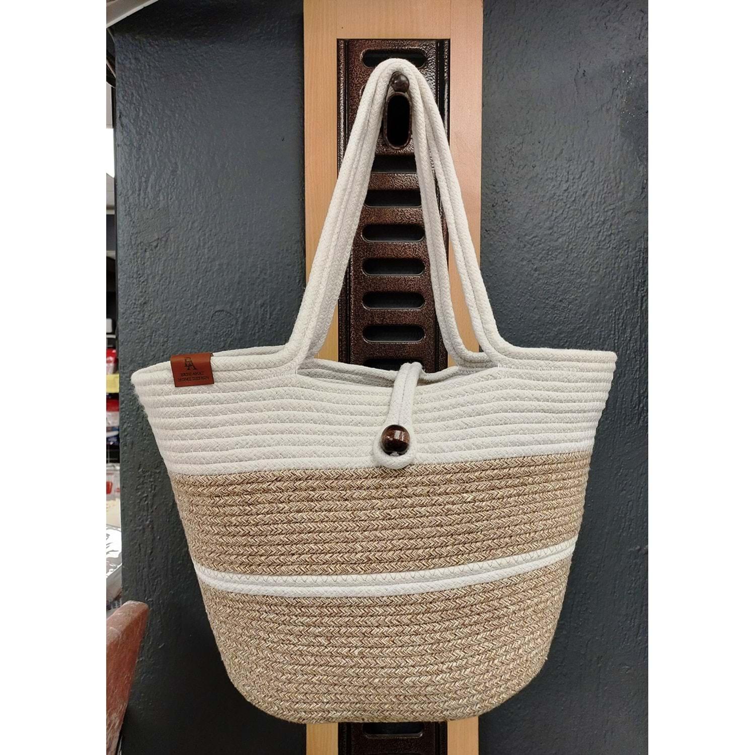 Bu eşsiz çanta, %100 doğal jüt malzemesi ile el örgüsü ile özel olarak üretilmiştir. Sadelik ve doğal güzelliğin mükemmel bir birleşimi olan bu çanta, her bir ayrıntısında el işçiliğinin izlerini taşır. Plajda veya günlük kullanımda rahatlıkla taşıyabileceğiniz hafif ve dayanıklı bir tasarıma sahiptir.