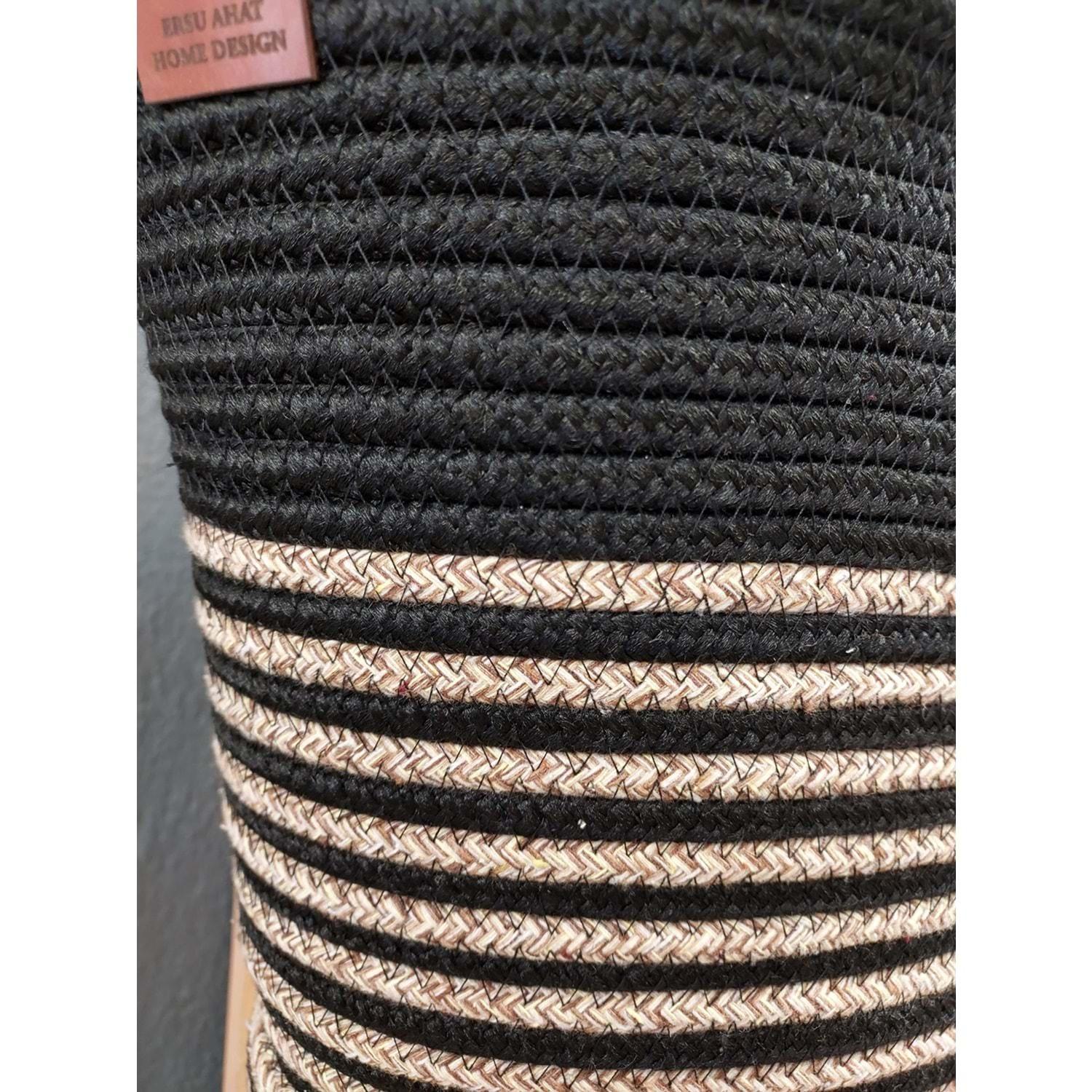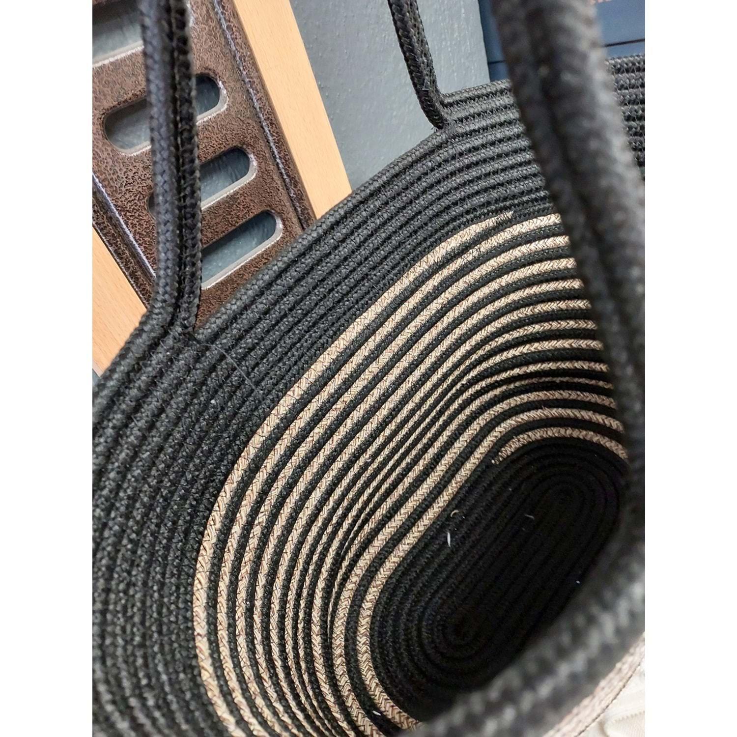 Doğal Hasır Jüt El Örmesi Günlük Kullanım ve Plaj İçin Uygun Bayan Çanta-Bej Siyah Şerit