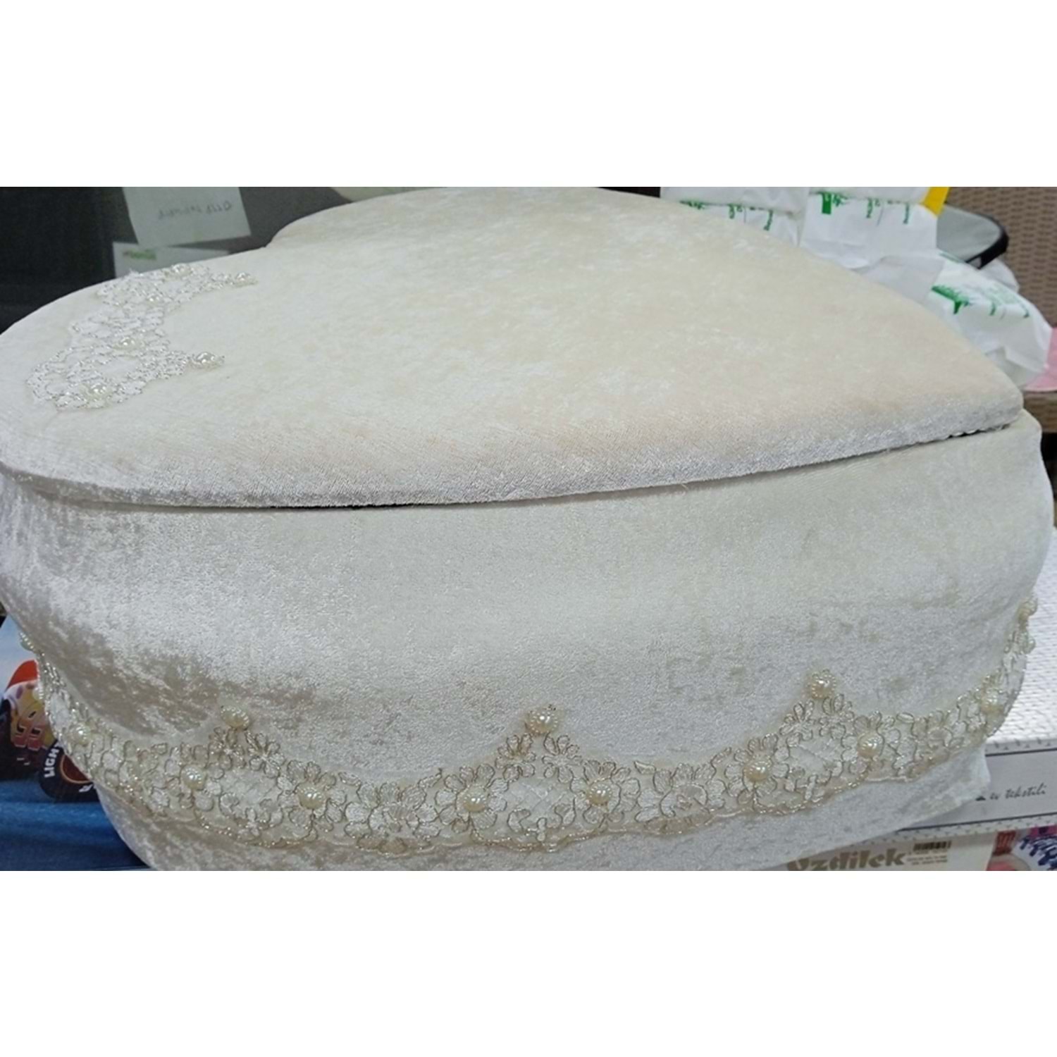gelin sandığı özelikleri İç kısmında saten kullanılmıştır. Menteşe kısımları ekstra güçlendirilmiştir. Üretiminde kullanılan ahşap sağlam ve dayanıklıdır. Ürün dış kaplamasında kadife kullanılmıştır. Boyutlar48*35*38 ( Boyutlar genel sandıkların ölçüleridir. Modele göre ufak değişiklikler olabilir. )