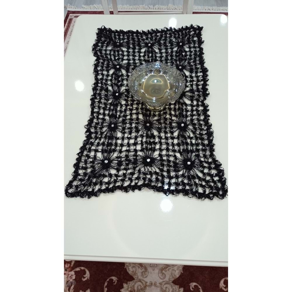 el örme tığ işi vitrin seti ürün özelikleri 4 parça 1 adet fiskos 100*100 cm 1 adet runner 50* 100 cm 2 adet sehpa örtüsü 40*40 cm