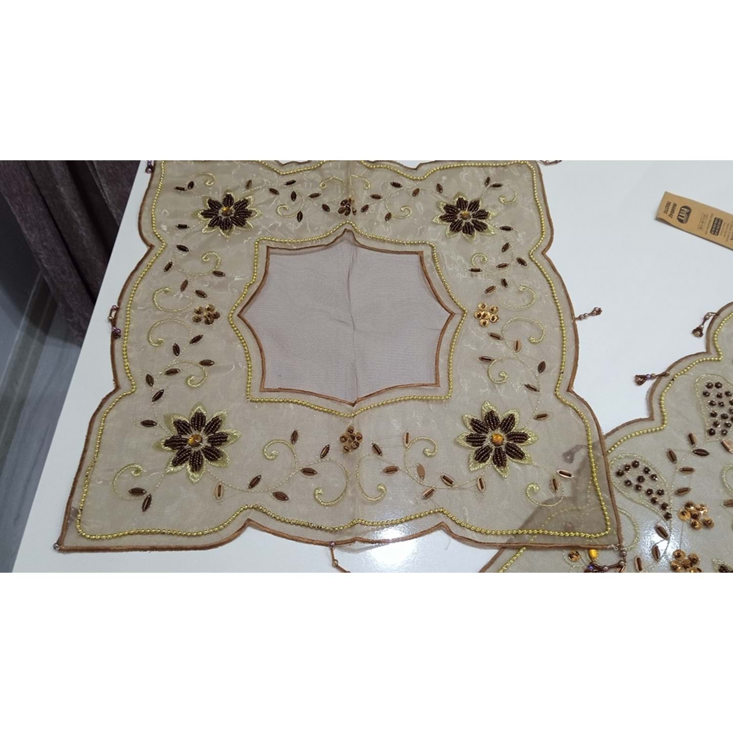 Otantik Pul boncuk Ve Tül İşleme 16 Parça Oda Takımı Kahve 1 ADET FİSKOS 90*90 CM 2 ADET SEHPA ÖRTÜSÜ 42*42 CVM 1 ADET RUNNER 42*110 CM 12 ADET PEÇETE 27*27 CM ŞAMPUANLI SU İLE ELDE YIKANABİLİR 30 C DE ÜTÜ İSTEMEZ SEREREK KURUTUNUZ SIKMA YAPMAYINIZ KIRIŞMAZ LEKE TUTMAZ