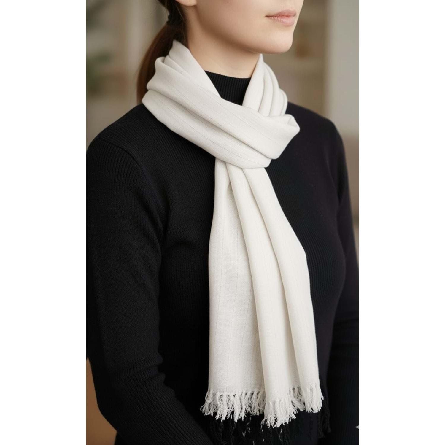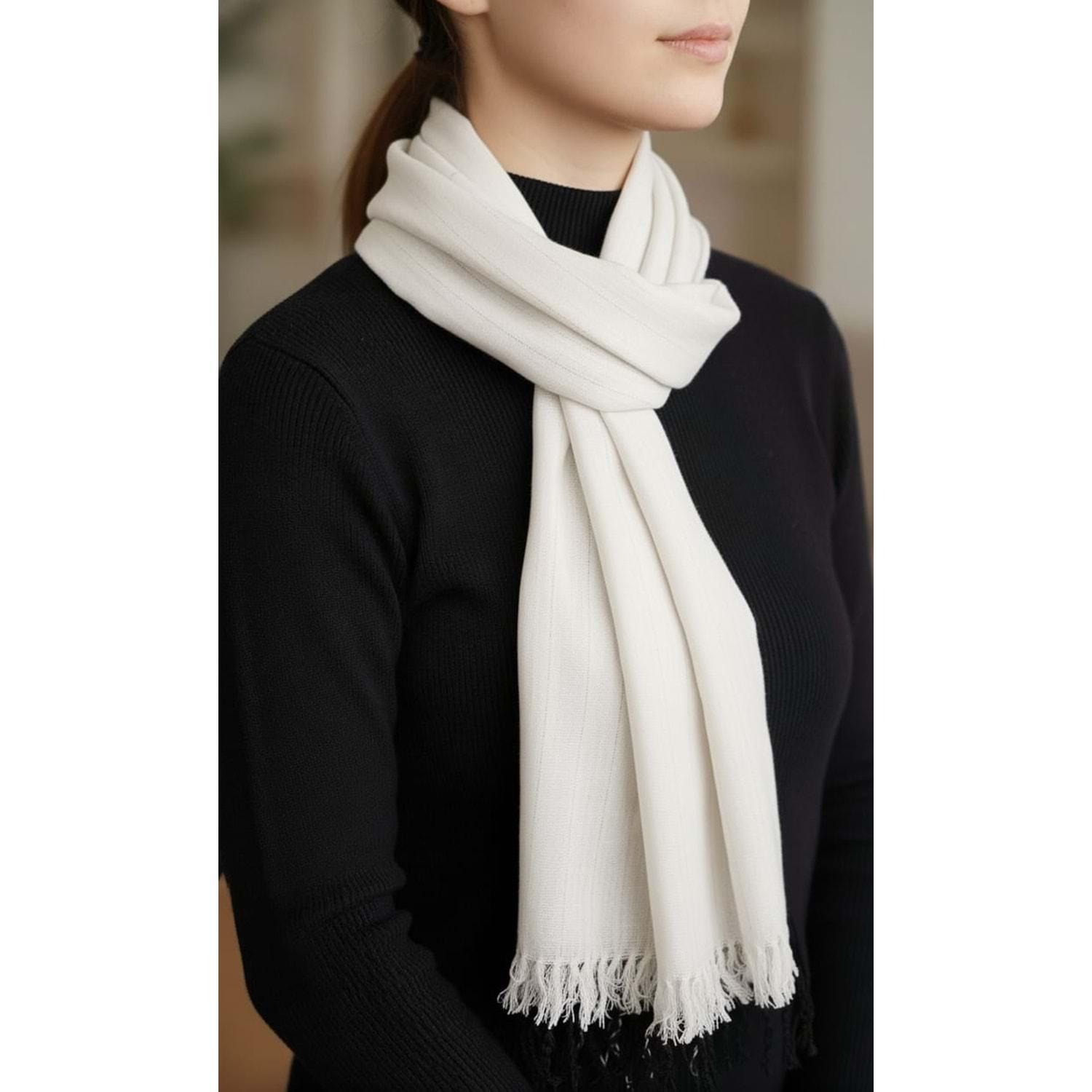 Mira Likralı Viskon El Dokuma Şal 40*199 CM / Beyaz