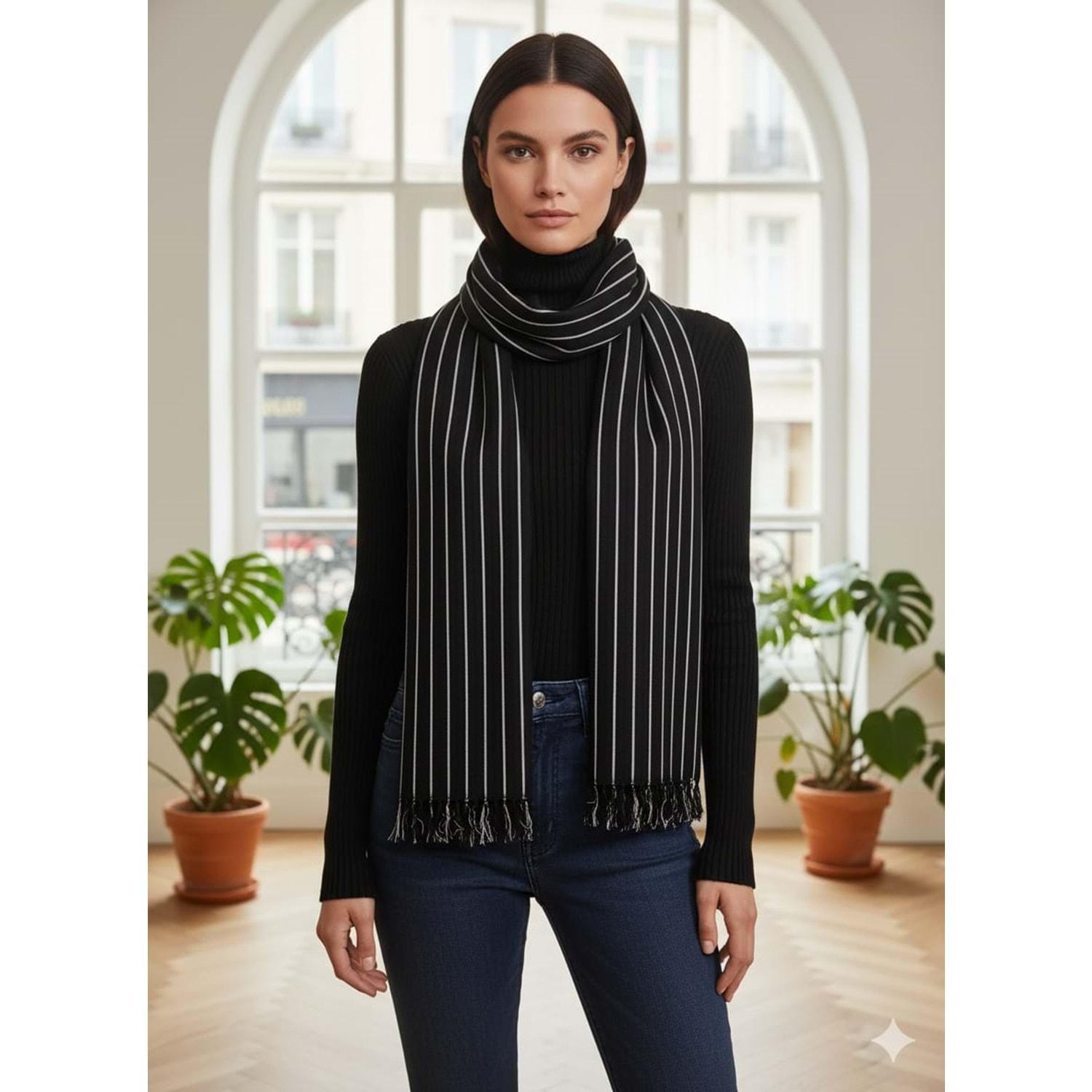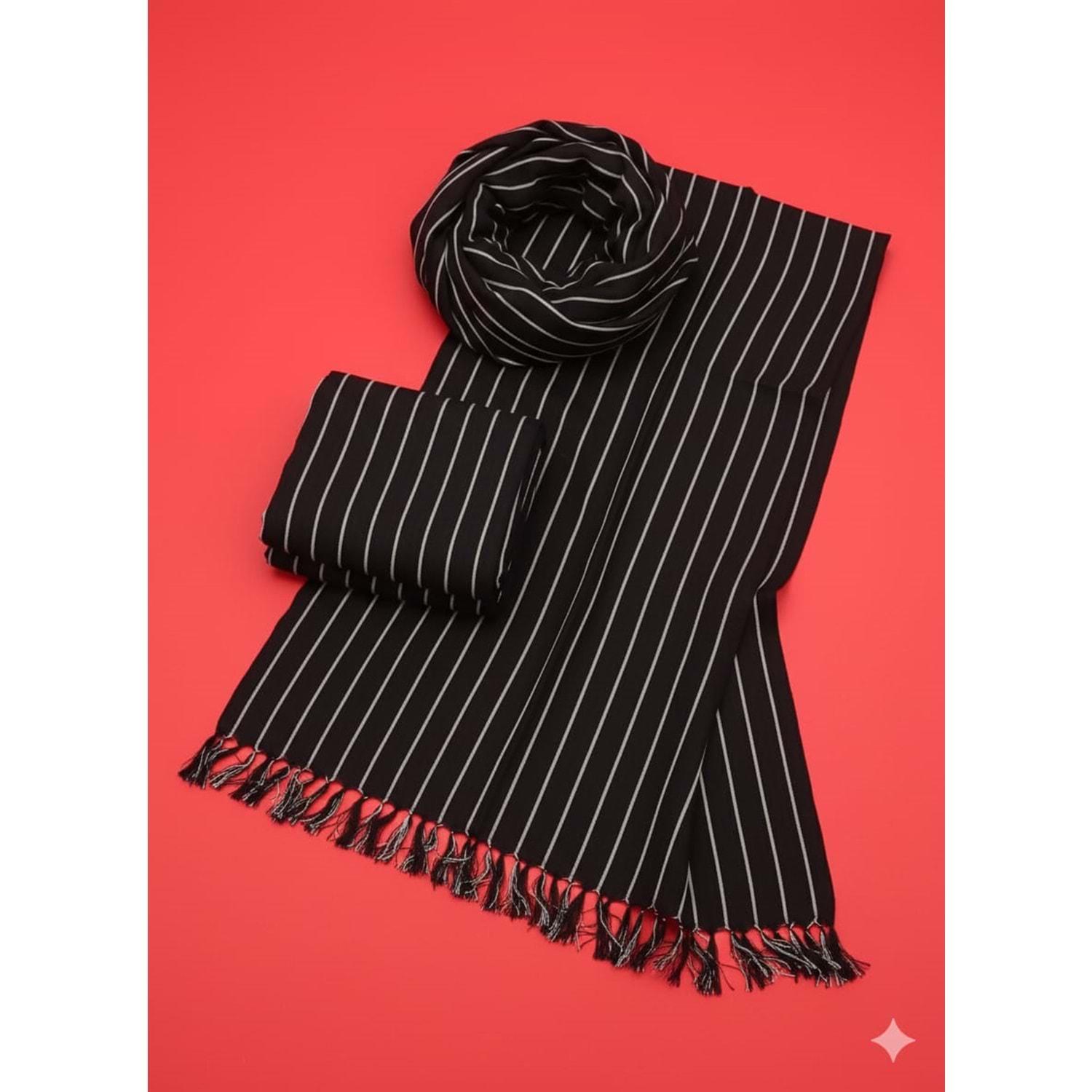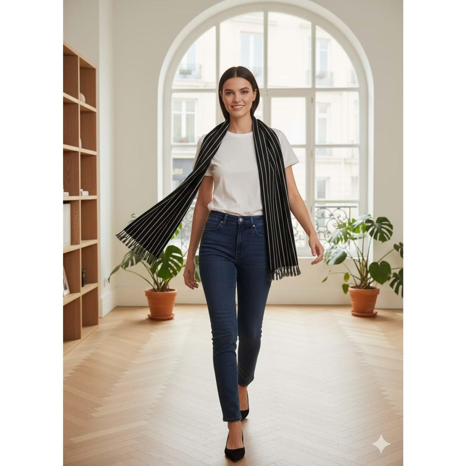 mandaş tekstil El Dokuması Jakarlı likralı Şal 40 x199 cm - siyah / beyaz % 100 viskon ip