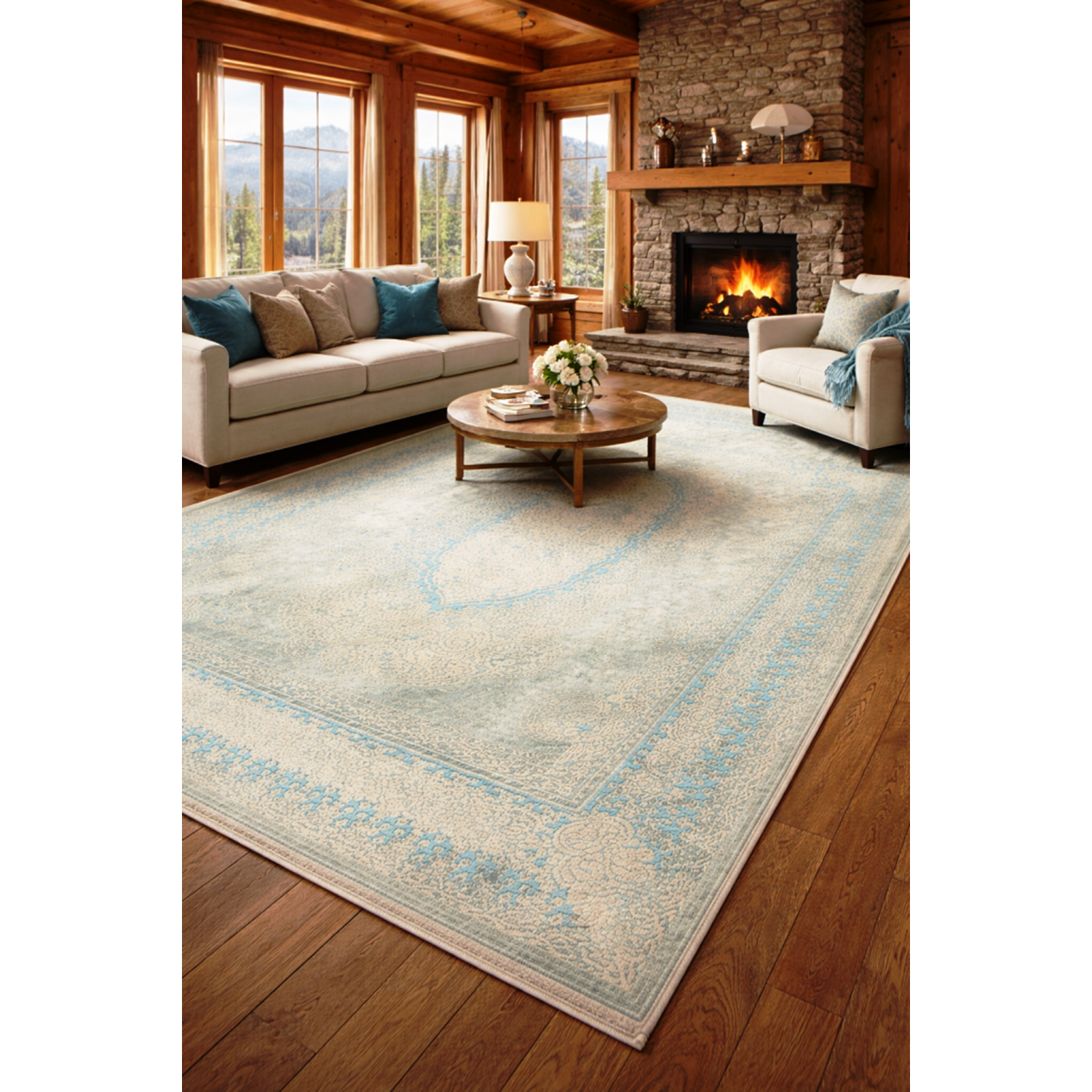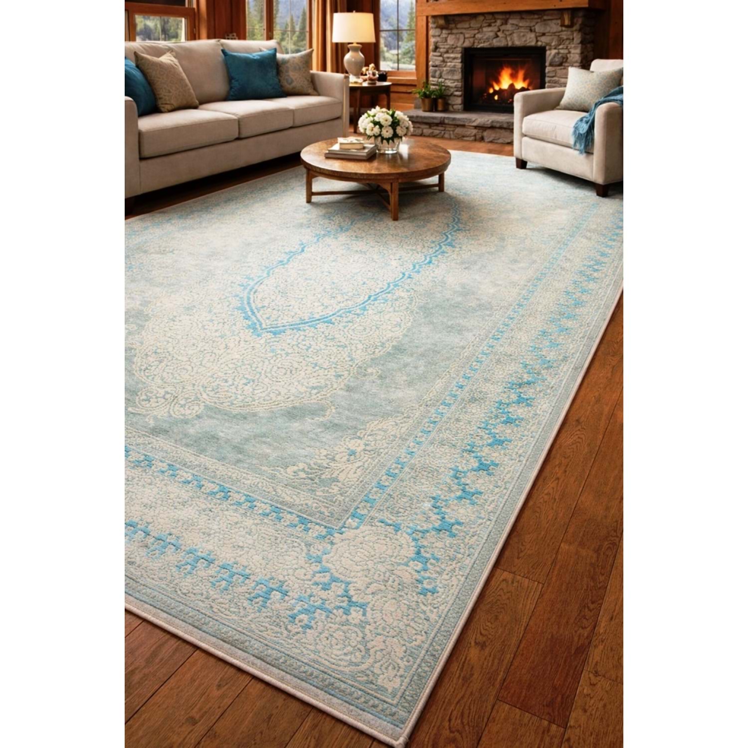 Nepal Sacaklı Halı 160*240 Turkuaz / krem
