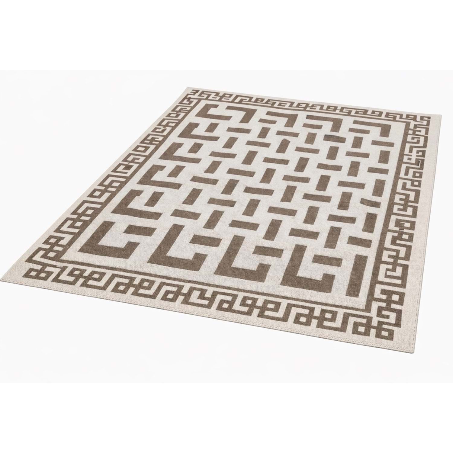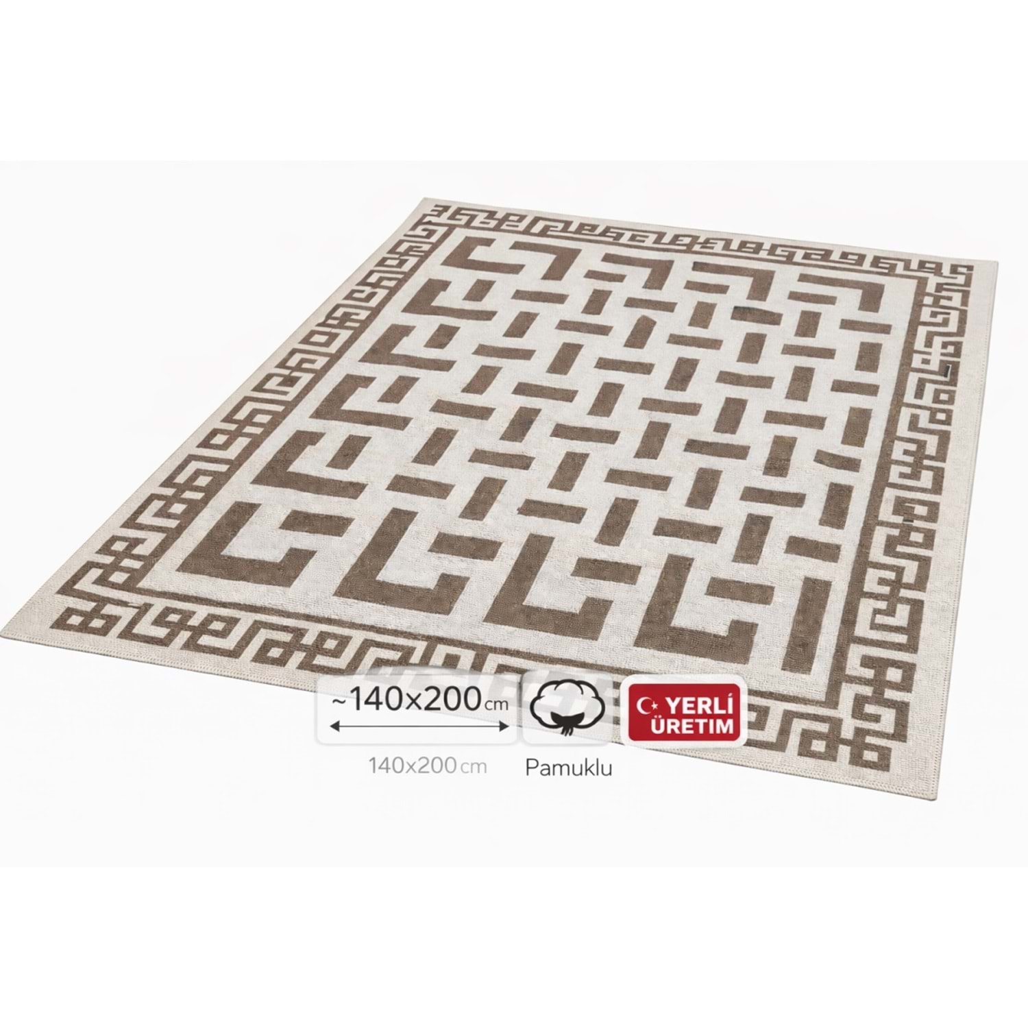 Pamuklu Bukle Lüks Kilim (140x200)-Labirent Kreme Kahve