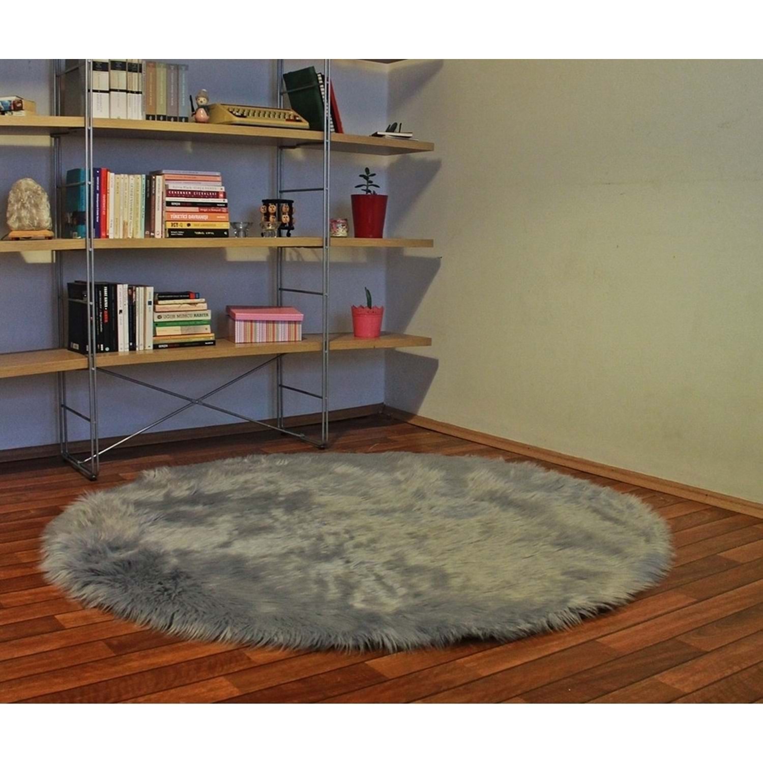Evru Tavşan Tüyü Yumoş Post Halı (120x120)Gri