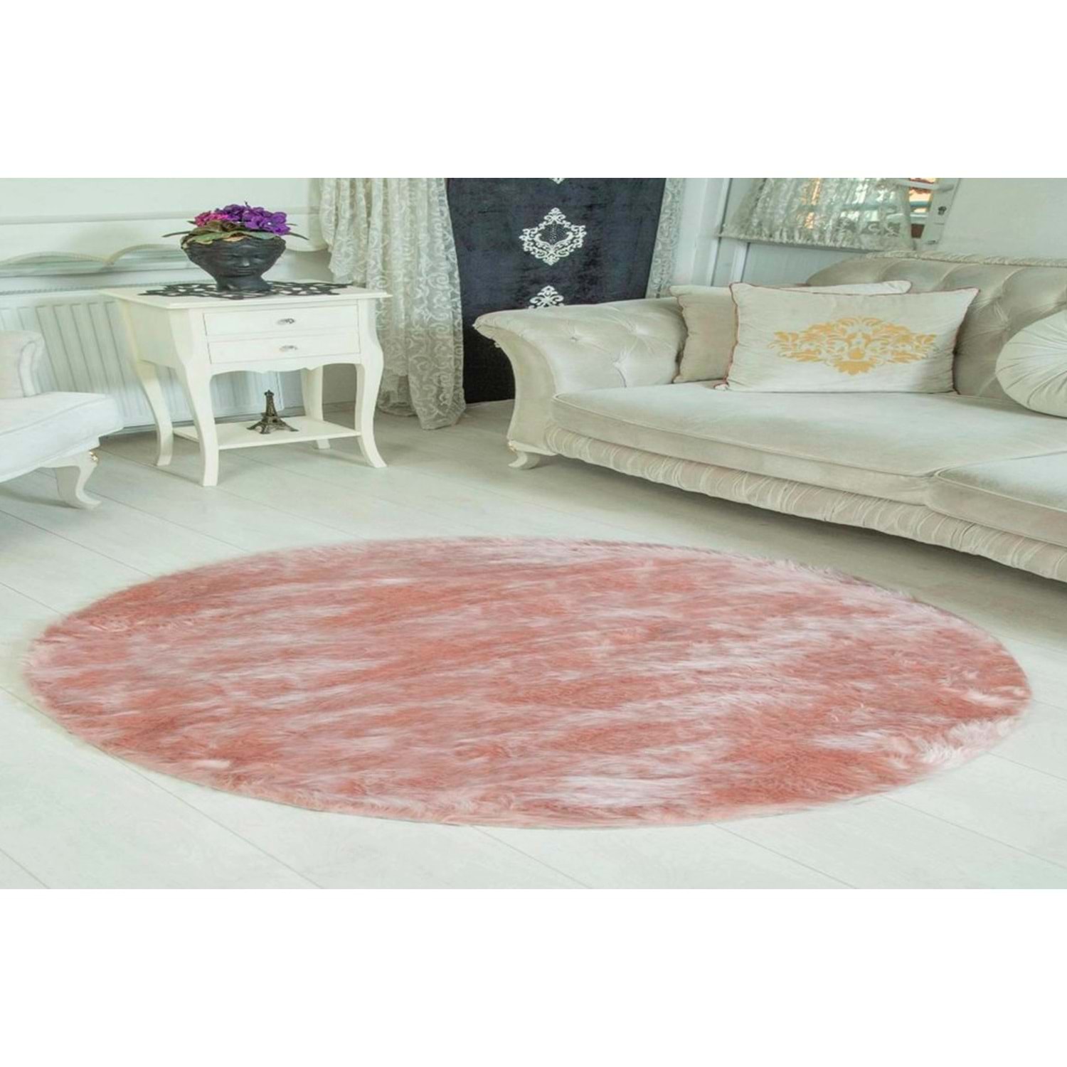 Evru Tavşan Tüyü Yumoş Post Halı (120x120)Pudra