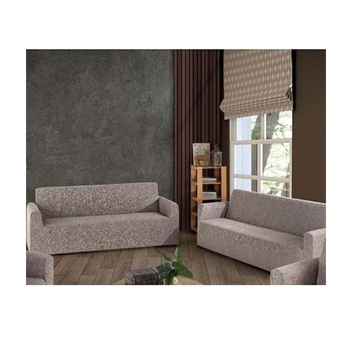 Altın Kelebek Jakarlı Streç Kaplama Maxi Çekyat Koltuk Örtüsü (3+3)-Taş