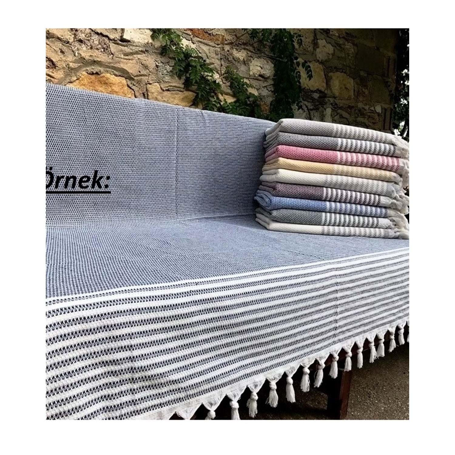 Mandaş Pamuklu Kaymaz Hasır Dokuma Kolları Örten Koltuk Örtüsü Maxi Takım-Koyu Gri Yeni