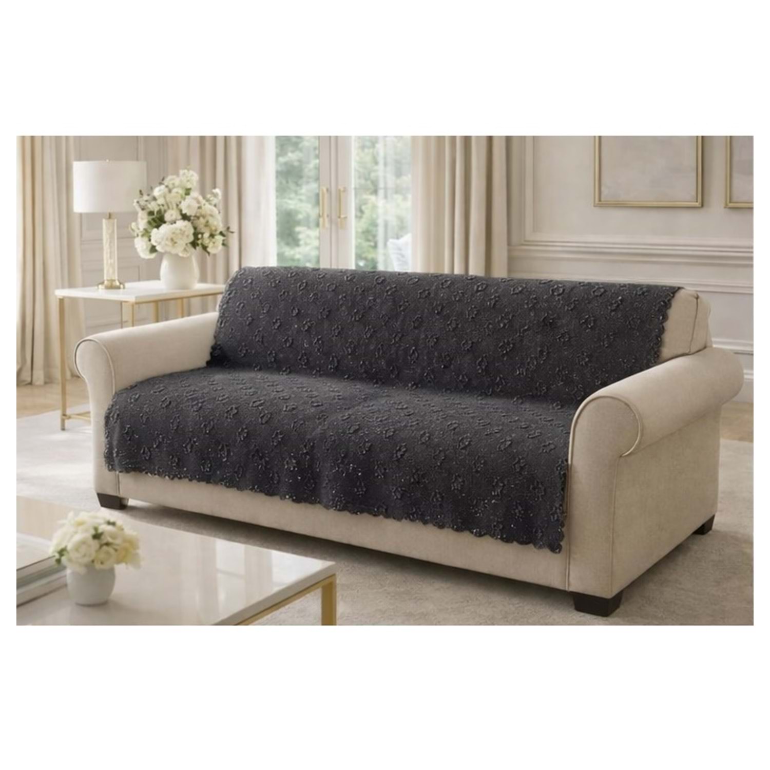 Ölçü: Geniş kullanım alanı sunan 170x210cm boyutlarıyla özellikle üçlü koltuklar ve çekyatlar için ideal ölçüdedir. Tekli koltuklar için ortadan ikiye kesip kullanabilirsiniz. Kesilen kenarlara basit bir dikiş yaptırarak kullanmanız önerilir. (Ölçülerde hafif sapmalar olabilir ancak idealdir, çok rahat yeterli olmaktadır.)