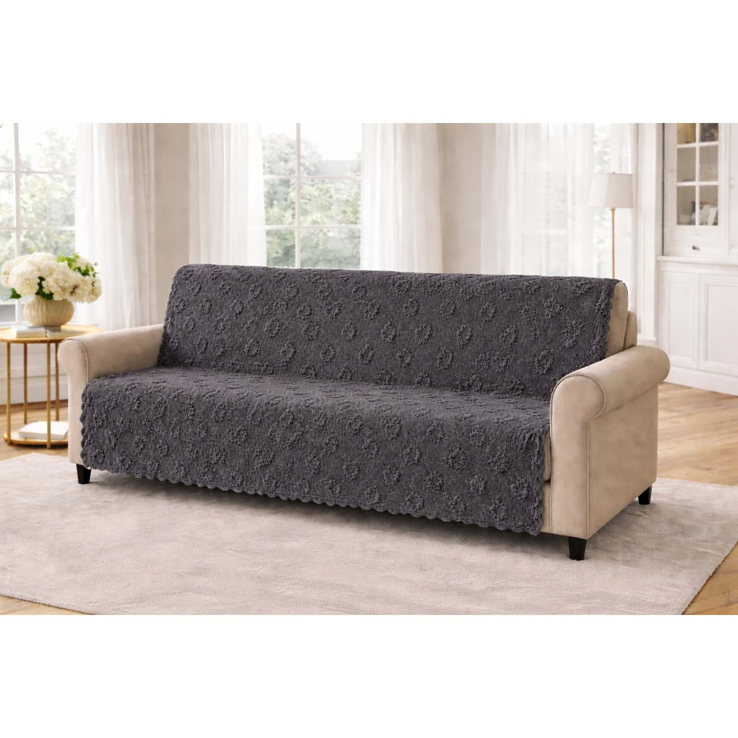 Ölçü: Geniş kullanım alanı sunan 170x210cm boyutlarıyla özellikle üçlü koltuklar ve çekyatlar için ideal ölçüdedir. Tekli koltuklar için ortadan ikiye kesip kullanabilirsiniz. Kesilen kenarlara basit bir dikiş yaptırarak kullanmanız önerilir. (Ölçülerde hafif sapmalar olabilir ancak idealdir, çok rahat yeterli olmaktadır.)