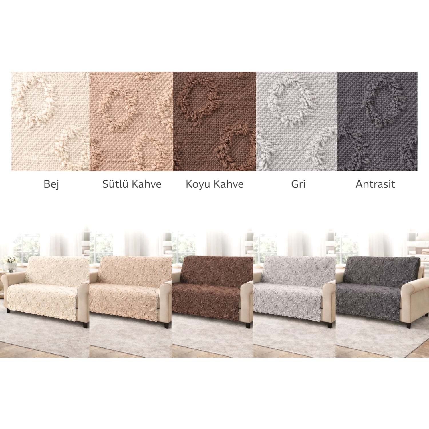 Kalite: En Kaliteli Şönil Kumaştan Üretilmiştir. Çekme ve Solmaz Yapmaz. Yumuşak bir dokusu vardır. Kaydırmaz özelliğe sahiptir. Konforludur ve estetik şekilde koltuğunuzda durur.