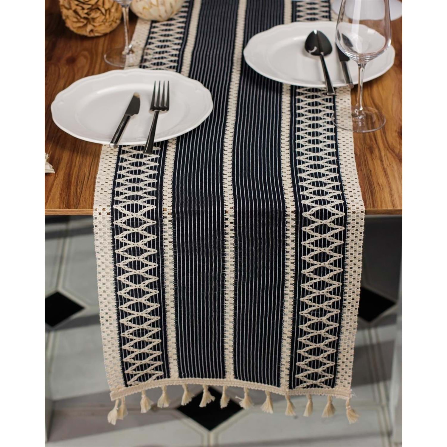 Beytuğ Tropik Pamuk Dantel Püsküllü larcivat Runner 1295-8