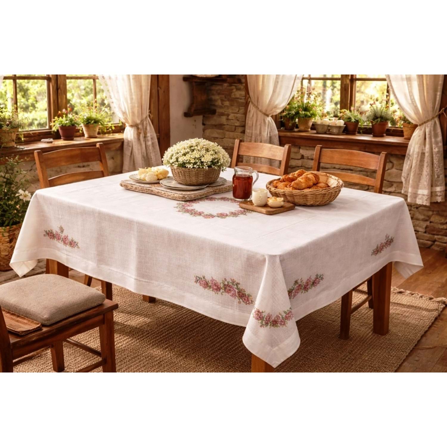mandaş Kanaviçe işlemeli buldan ipeği masa örtüsü kırmızı 140*180