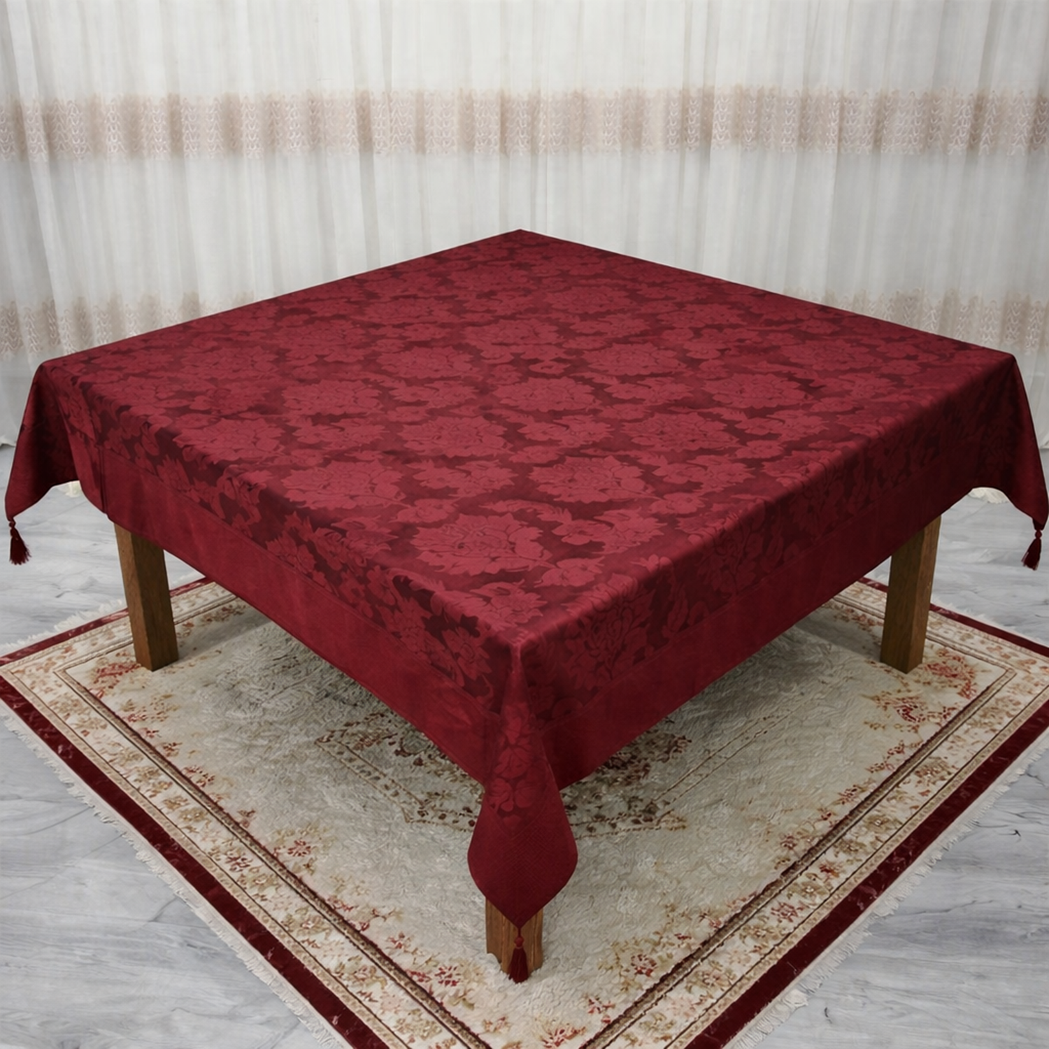 Mandaş Milanyum kaymaz şönil masa örtüsü 170*170 bordo