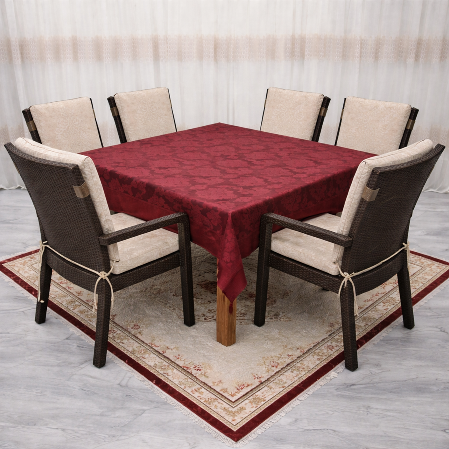 Mandaş Tekstil'den Premium Arkalıklı Rattan Sandalye Minderi 6 adet+ masa örtüsü 170*170 cm