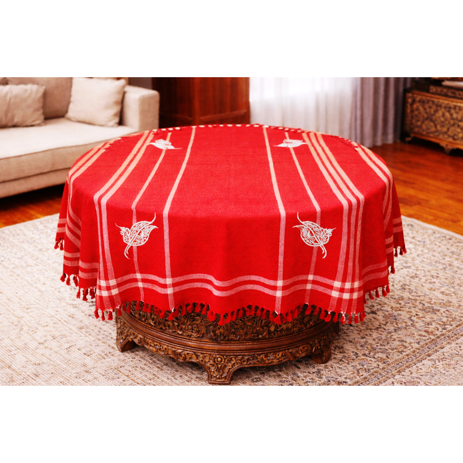 Manisa El Dokuma Hediyelik Fiskos Örtüsü Kırmızı 100*100 Turalı