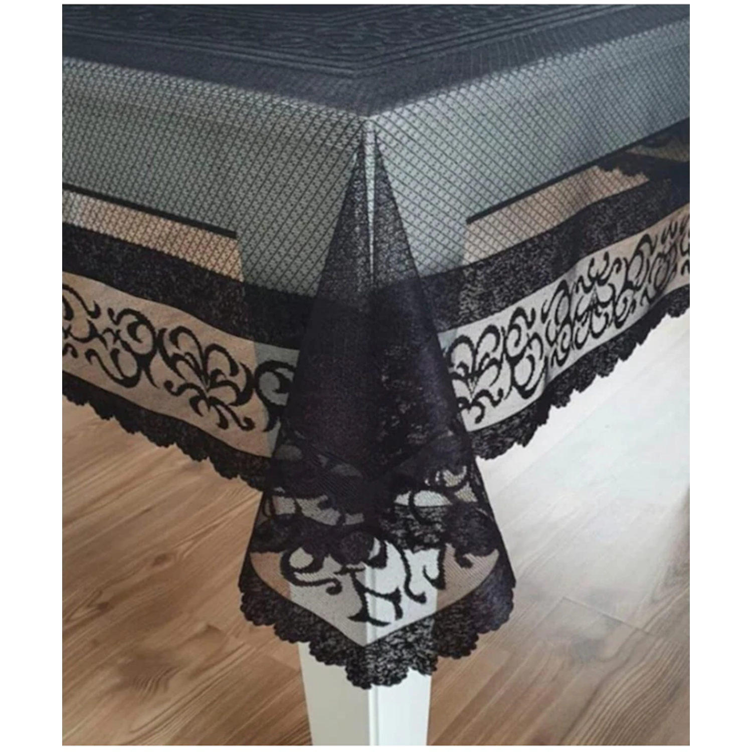 Raşel Örme 160x180 Pano Desenli Masa Örtüsü siyah