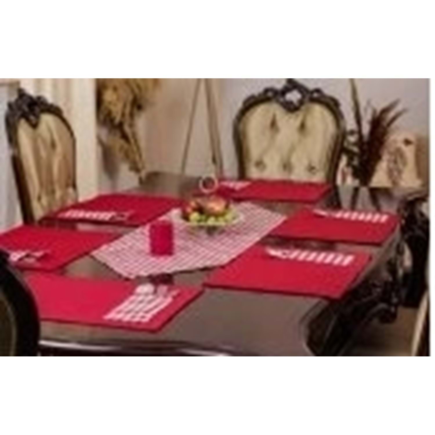 7 Parçalı çeyiz , sunum seti. 6 adet 35x45 cm Amerikan servis supla + 110x40cm runner set 7 parçadan oluşmaktadır. 6 adet amerikan servis supla ve 1 adet runner. %60 Pamuk %40 Polyester bir üründür. 40 derecede, ağartıcı kullanmadan yıkayınız.