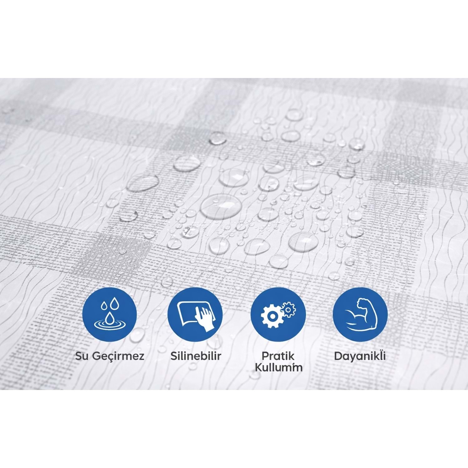 Kesme Masa Örtüsü Muşamba-Kareli Gri - 140X140