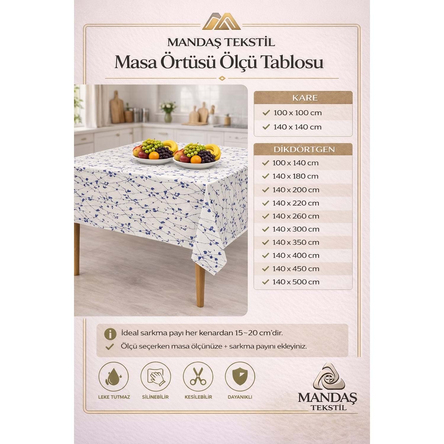 Kesme Masa Örtüsü Muşamba-Lila Beyaz Yeni - 140X500