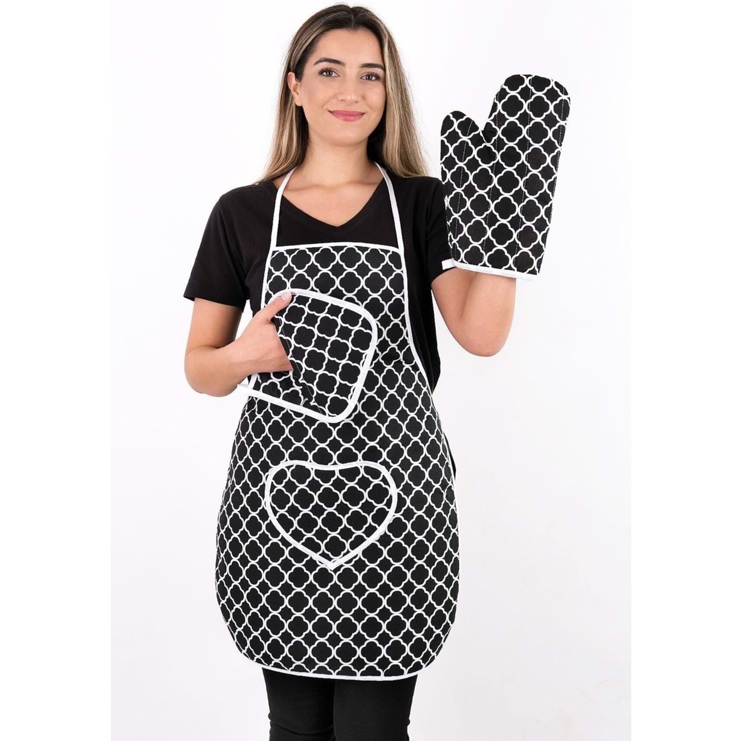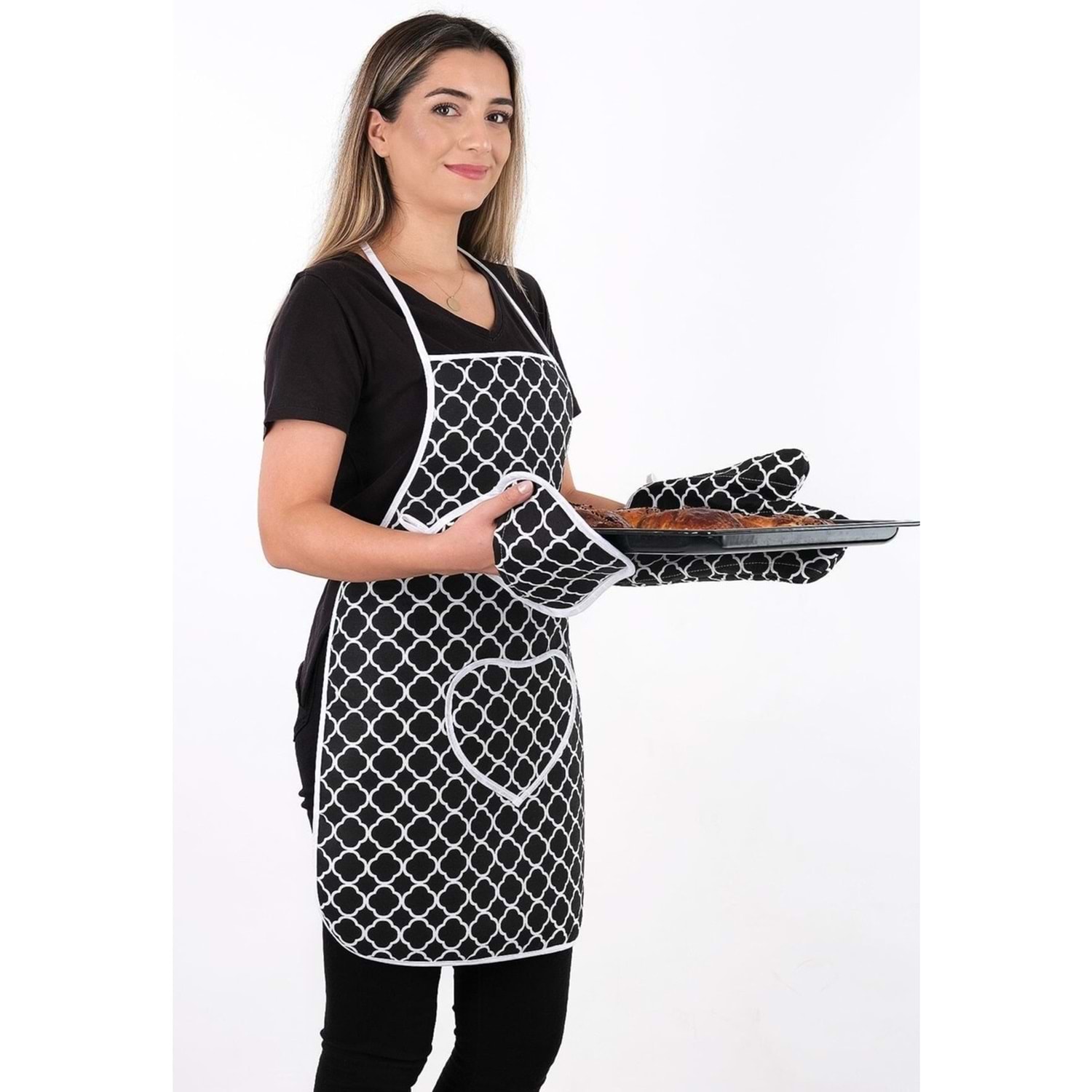polo life 3 Parça Sıvı Geçirmez Mutfak Önlüğü Siyah