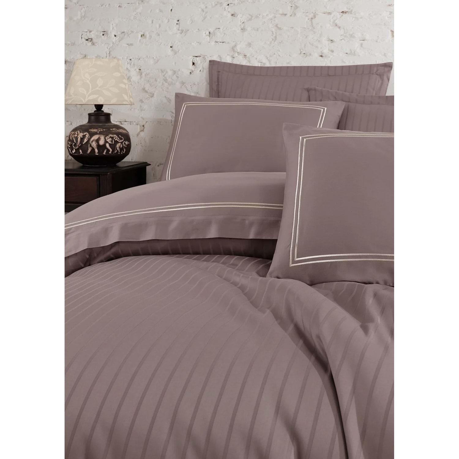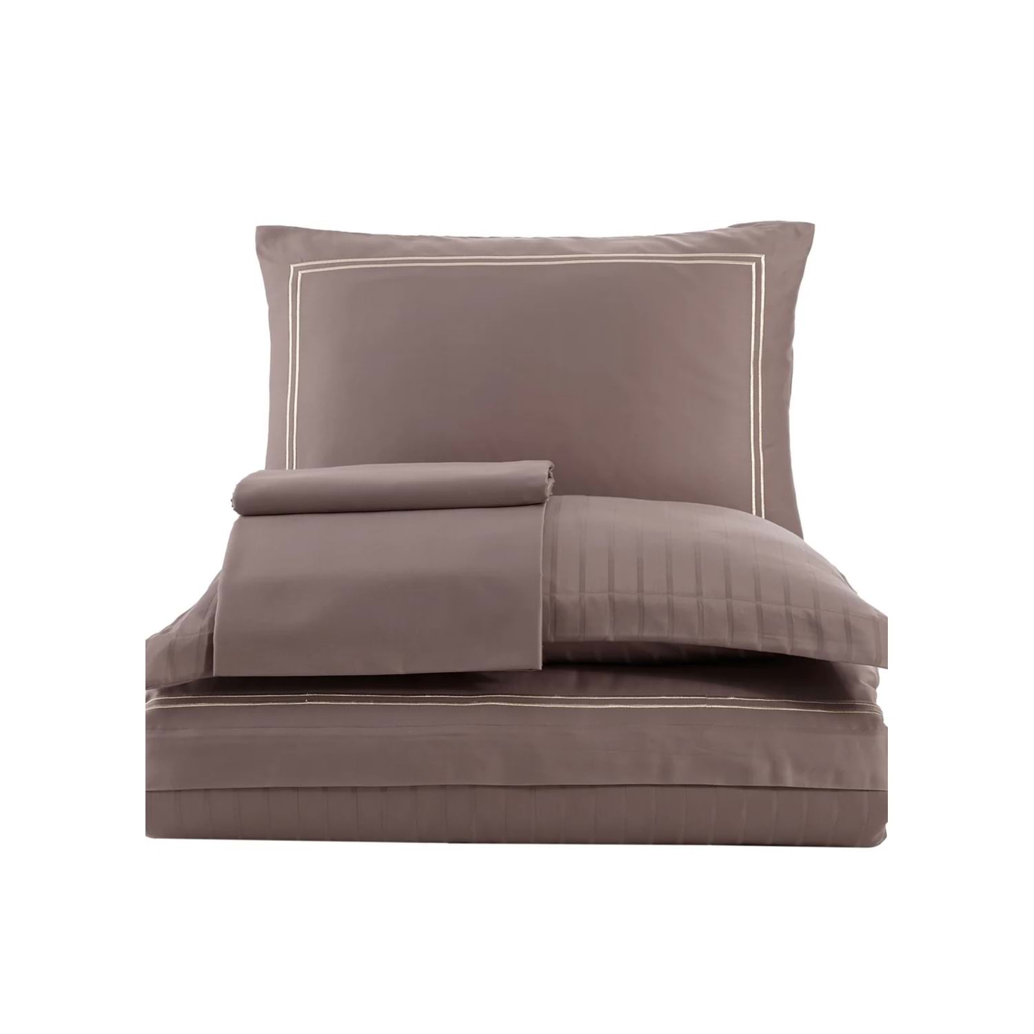 Dantela İmge Nakışlı Pamuk Saten Yollu Çift Kişilik Nevresim Takımı-A.Kahve
