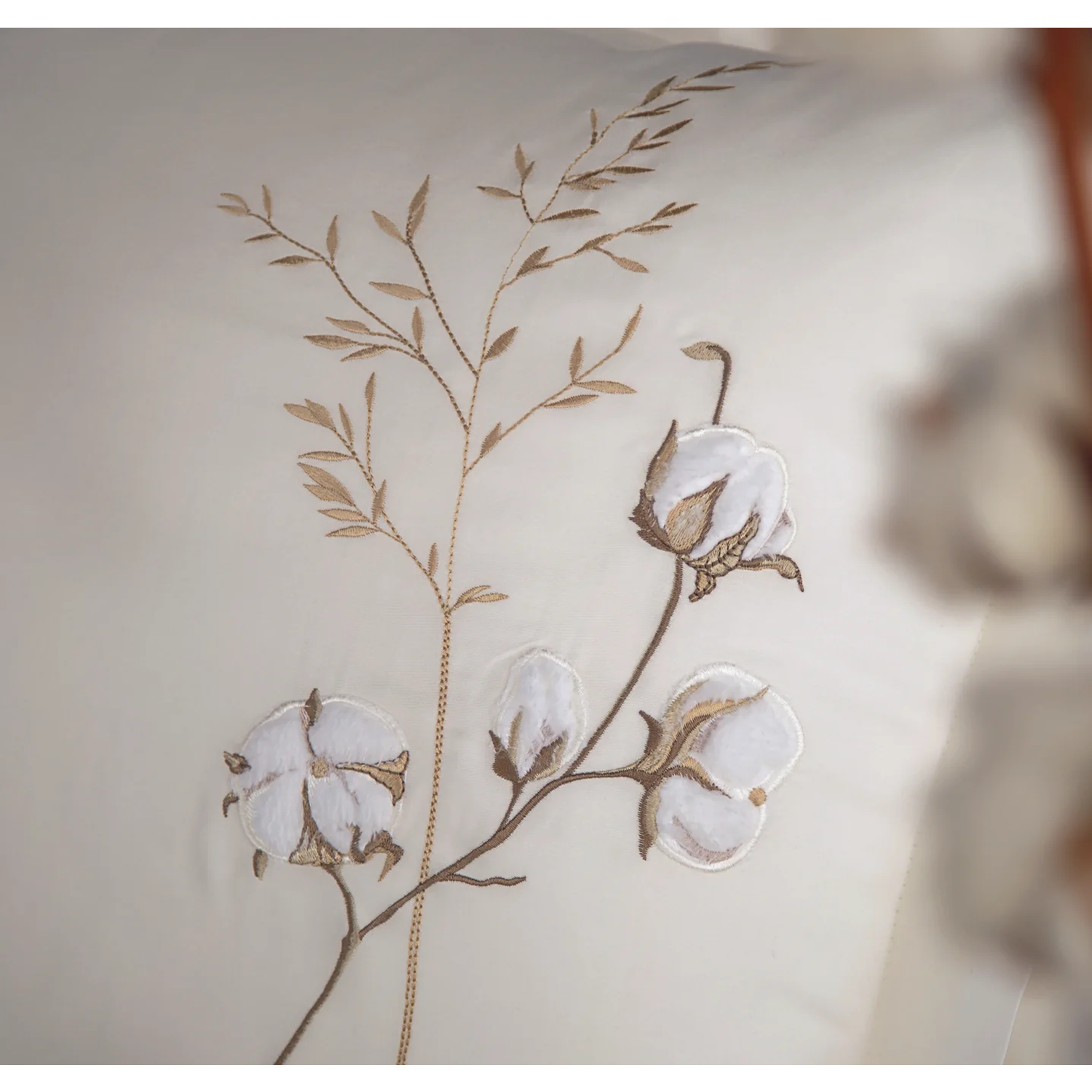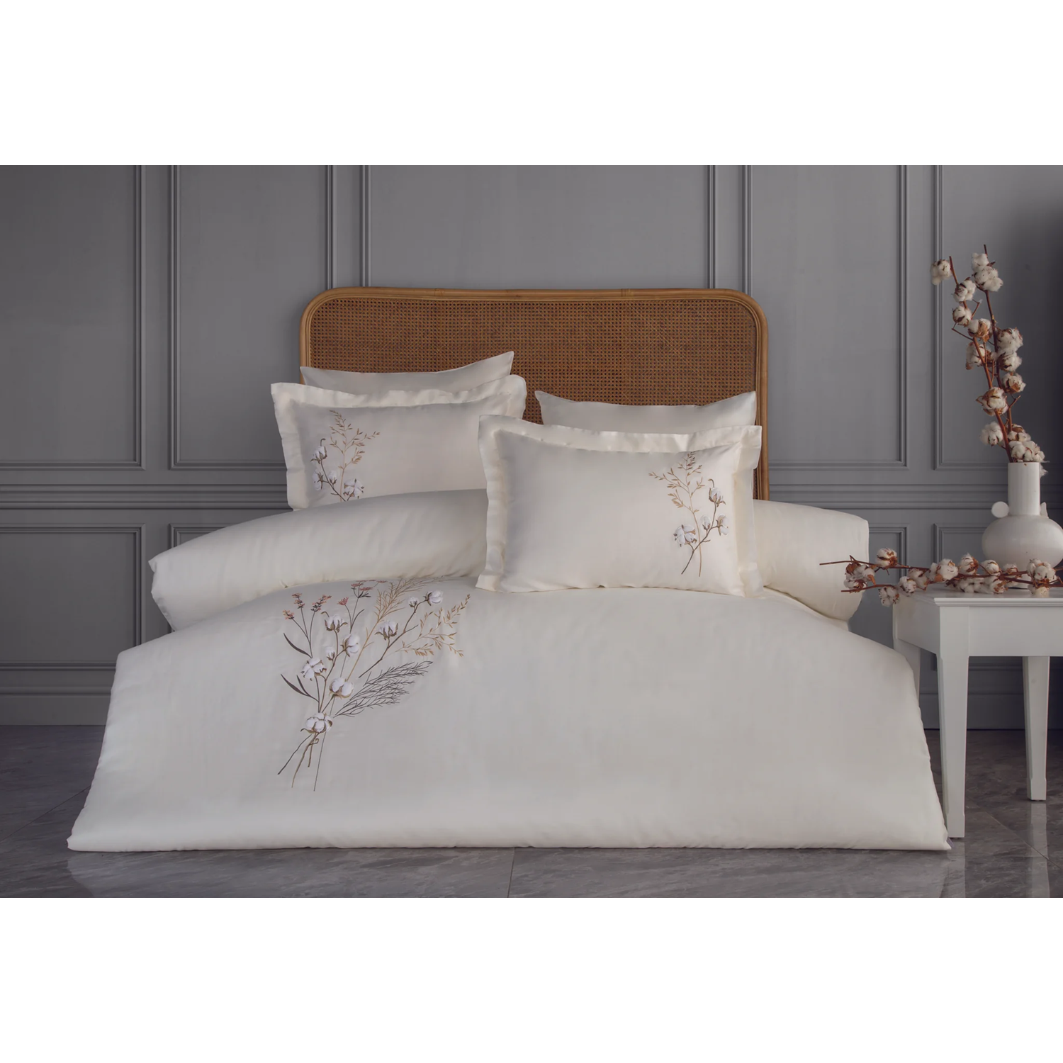 Dantela Moneda Nakışlı Pamuk Saten Çift Kişilik Nevresim Takımı-Bej