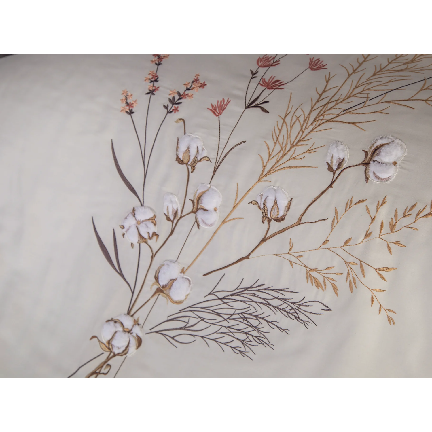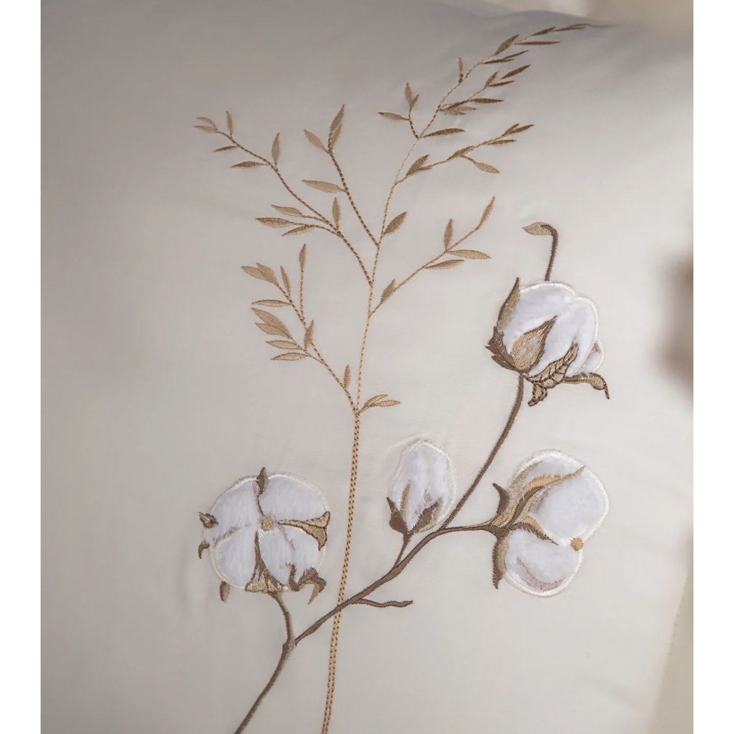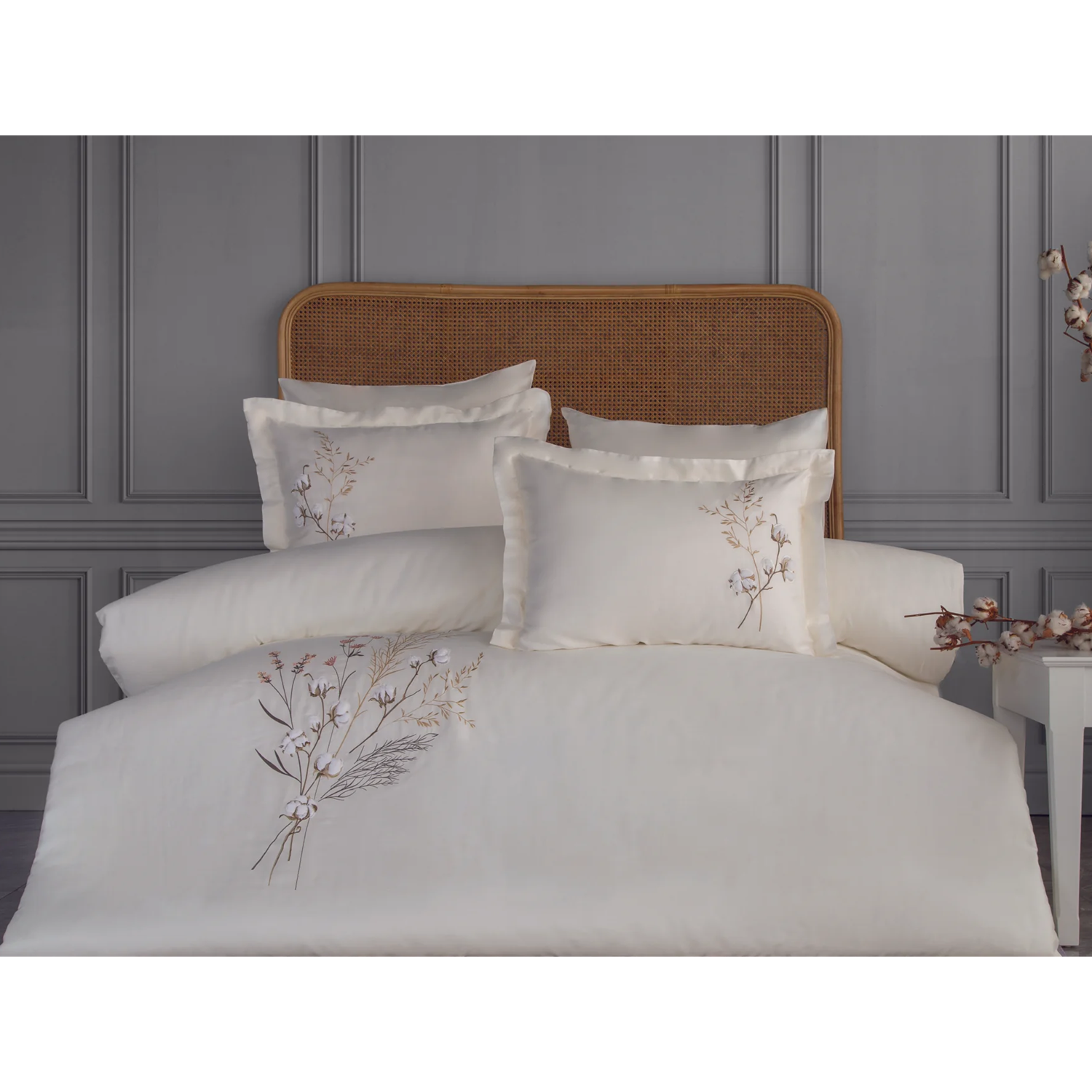 Dantela Moneda Nakışlı Pamuk Saten Çift Kişilik Nevresim Takımı-Krem
