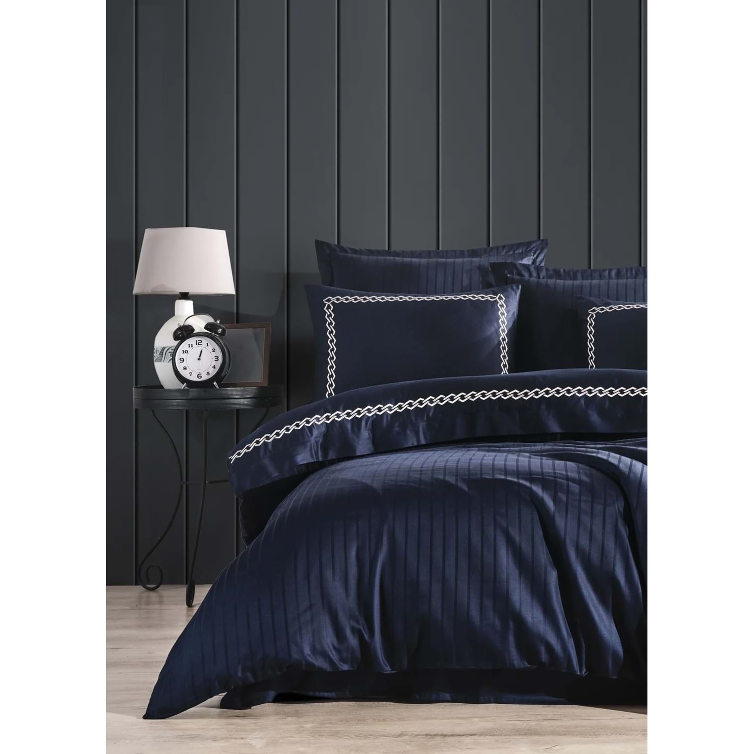 Eşsiz tasarım ve ipeksi dokunuş ile tanışın… Pamuk saten kumaş olarak ürettiğimiz ürünümüz 83 tel iplikten oluşmaktadır. Bir santimetrekare de 83 tel iplik kullanılmıştır. Tamamen %100 pamuk ipliği kullanılarak üretilmiştir. Özel olarak tasarladığımız desenlerimizi nakış işleme tekniği kullanarak kumaşlarımızın yüzeyine işlemekteyiz. Yıkama mukavemeti en yüksek seviyede üretilmiştir. Yıkama sonrası renk solması, kumaş küçülmesi, boncuklanma (pilling) gibi sorunlar yaşanmamaktadır. Çarşaf boyutunu normalde daha geniş üretilerek çarşaf toplanma riskini en minimum seviyede tutmaktayız. Kullanım konforu ve şık bir tasarım sunarak evinizin tarzını yansıtıyoruz. Ürün İçeriği toplam 6 parçadan oluşmaktadır.