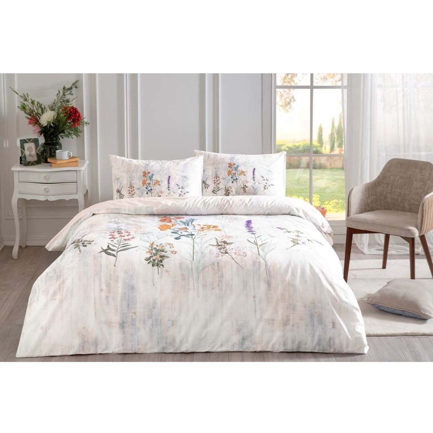 Özdilek Nev Serisi -Somon Floraison- Çift Kişilik Nevresim Takımı