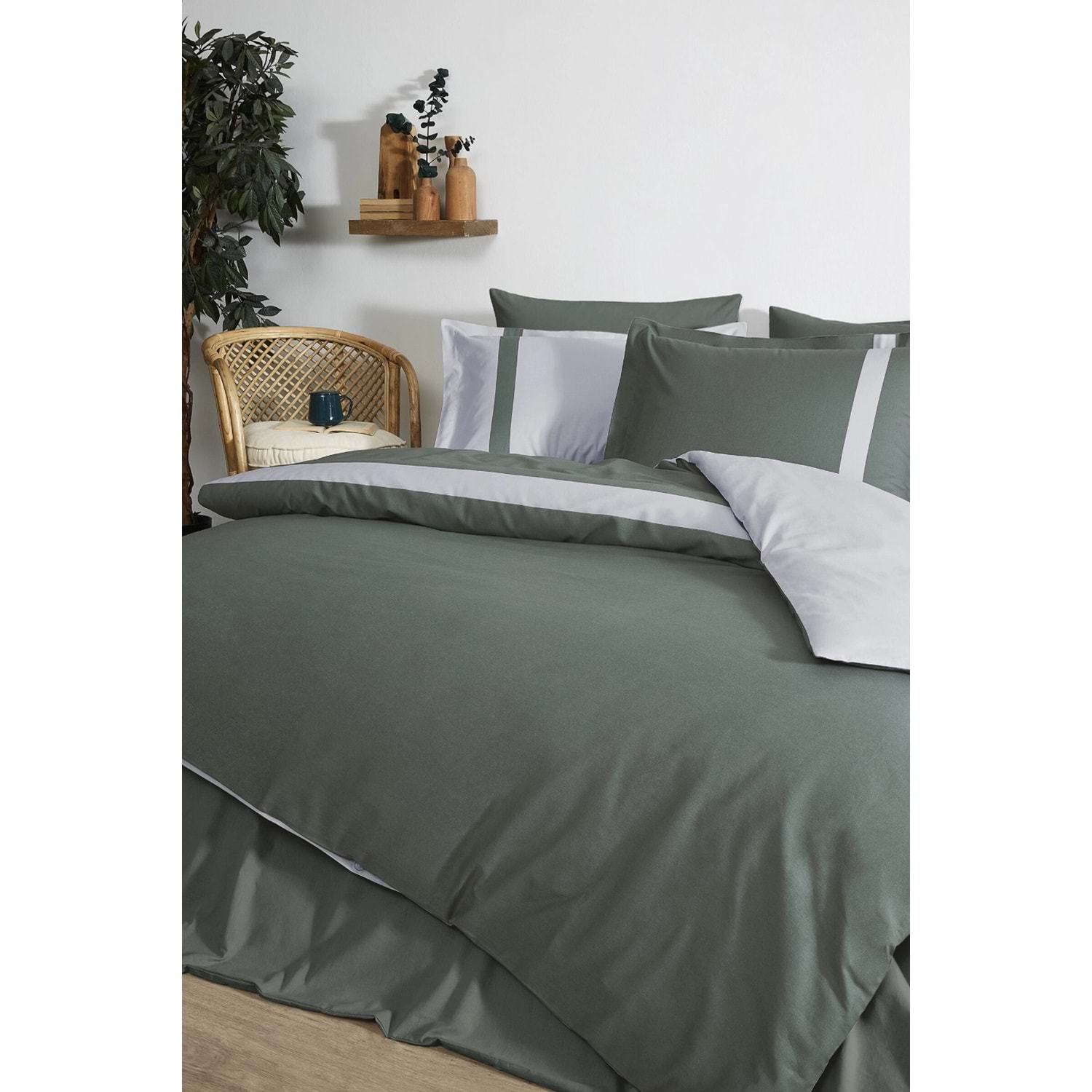 Özdilek Ranforce -Colour Stripe Haki- Çift Kişilik Nevresim Takımı