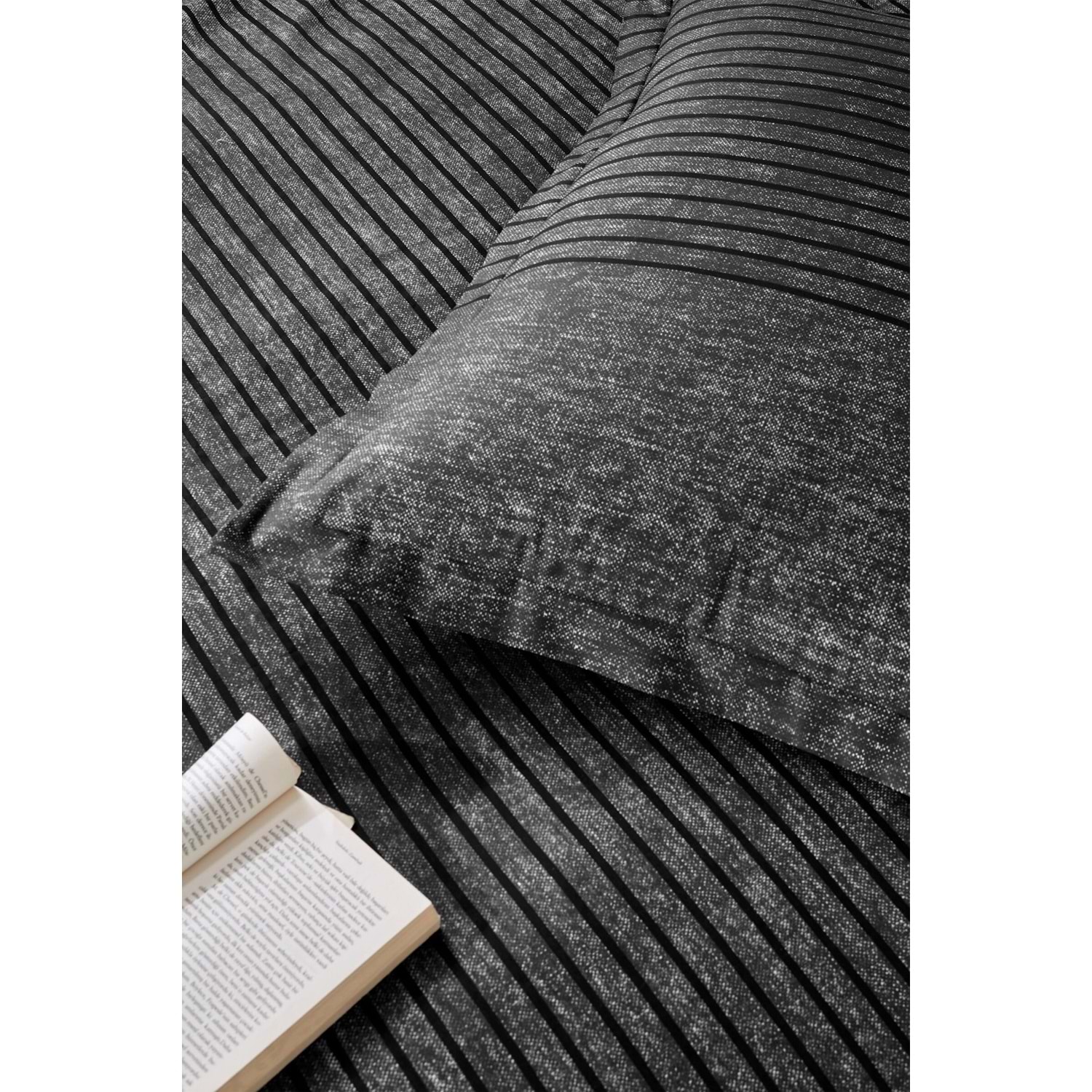 Özdilek Ranforce Lastikli Çarşaflı Tek Kişilik Nevresim Takımı-Noir Antrasit