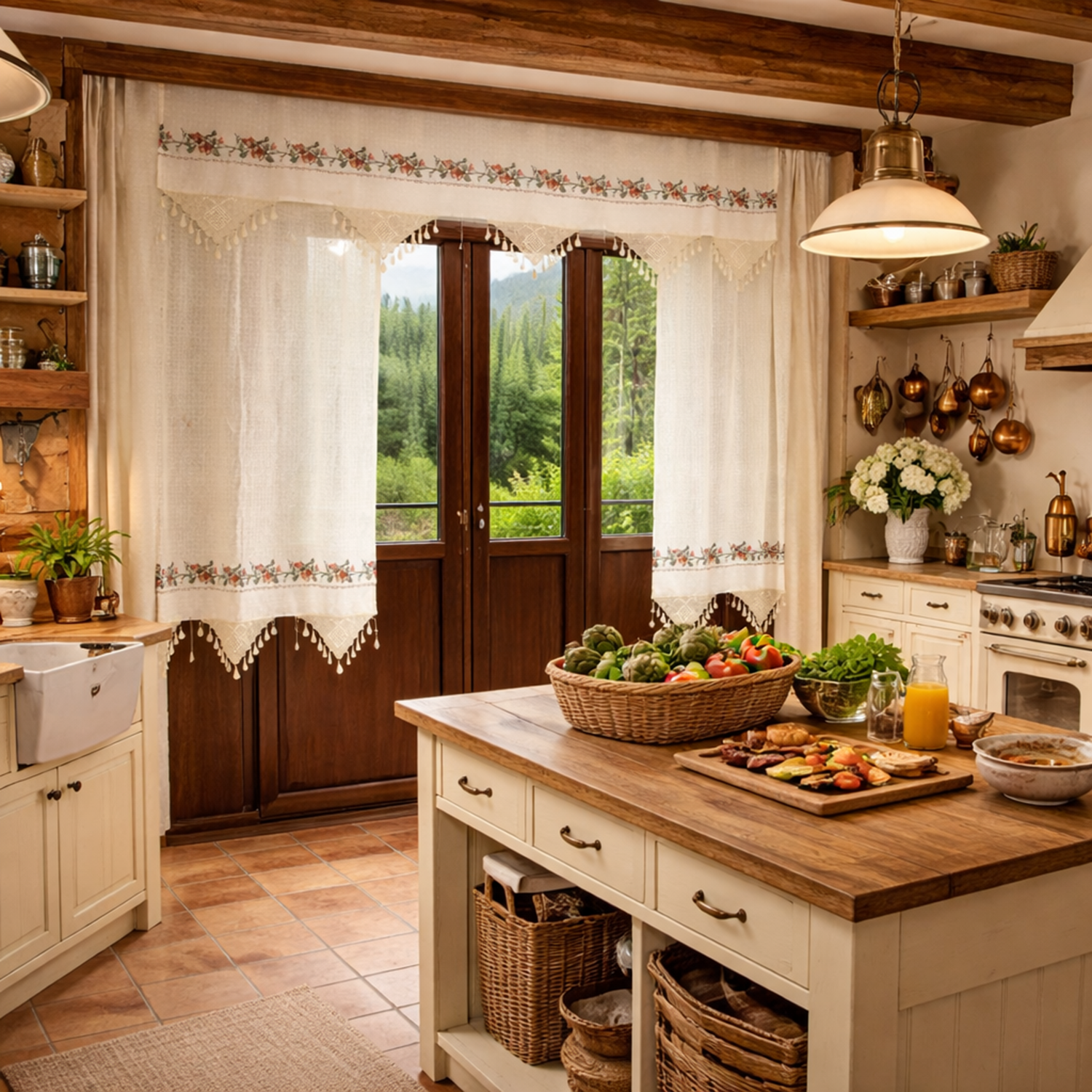 MANDAŞ Kanaviçe İşlemeli Buldan Perdesi (2 fon prç +1 valans )150*160)