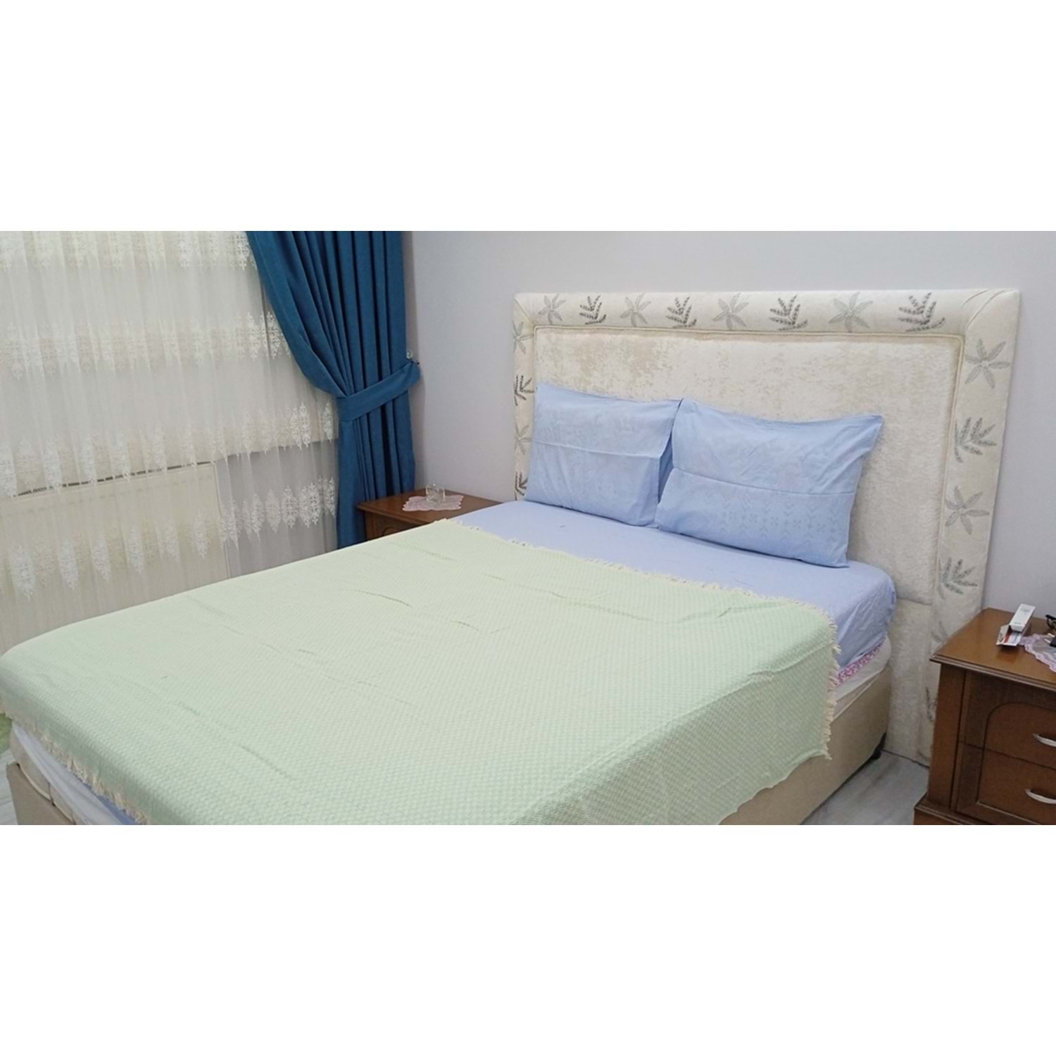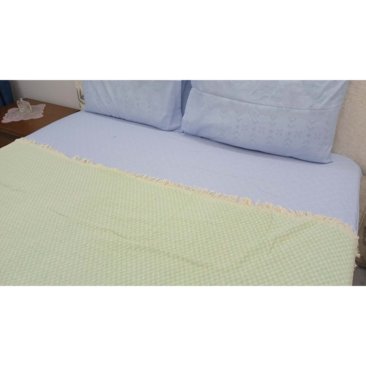 Amazon Ev Naturel Tek Kişilik Pike Takımı-Yeşil Krem