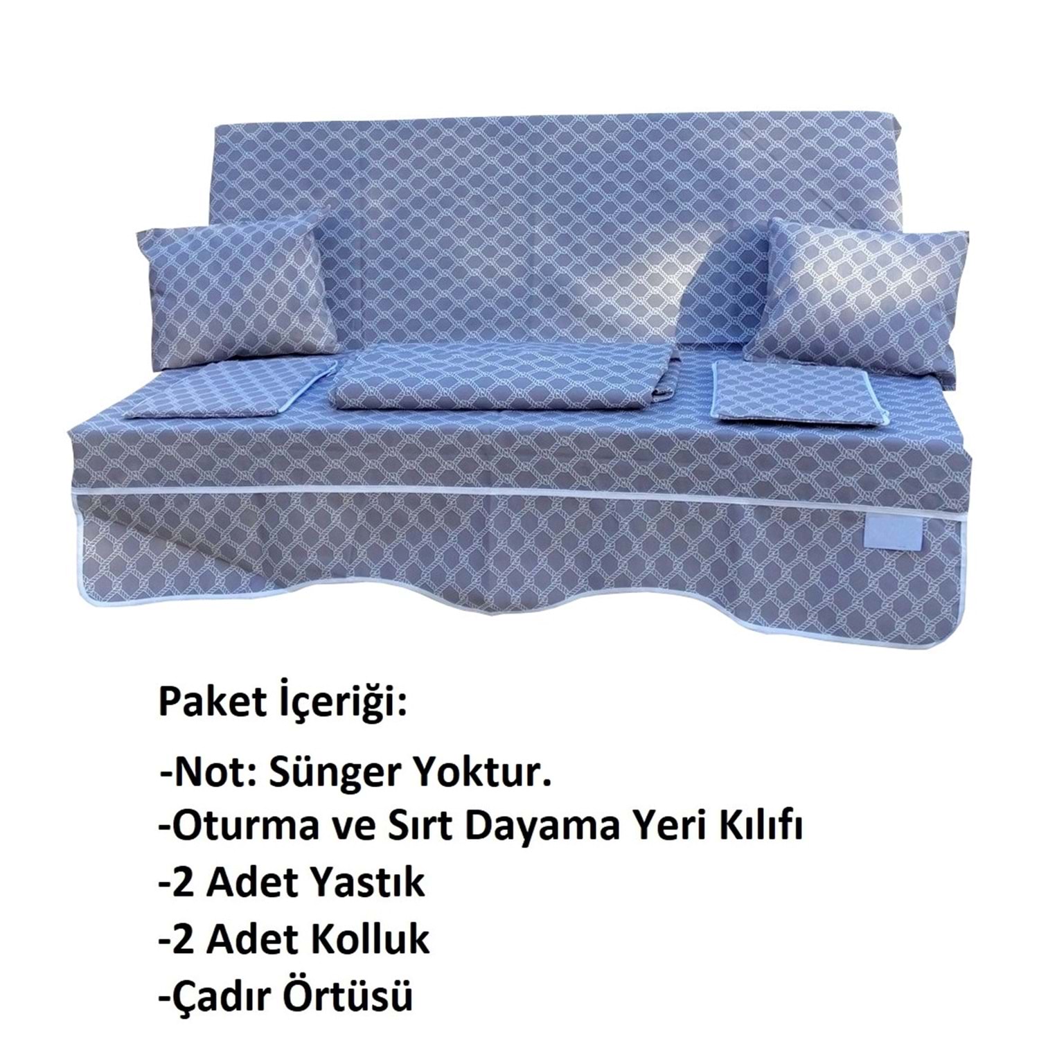 Mandaş Süngersiz 2 Kişilik Salıncak Minder Seti (Pamuklu Kumaş)-Denizci Gri