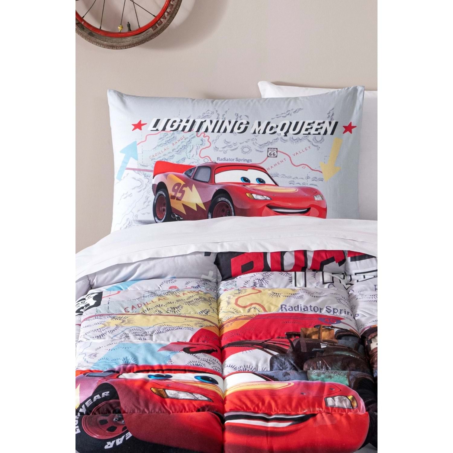 Özdilek Lastikli Çarşaflı Lisanslı Tek Kişilik Çocuk Uyku Seti-Şimşek Mcq Cars On The Road Gri