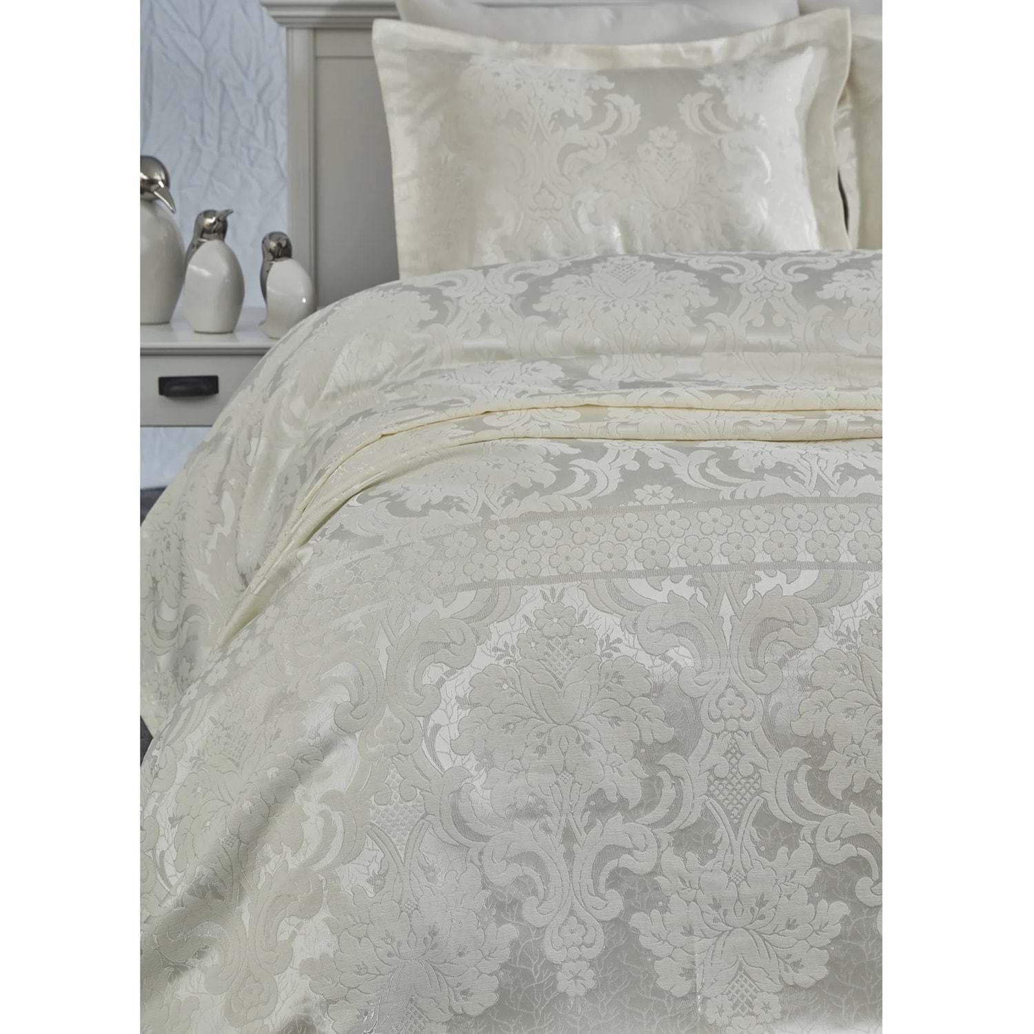 Dantela Armada Jakarlı Çift Kişilik Yatak Örtüsü Seti