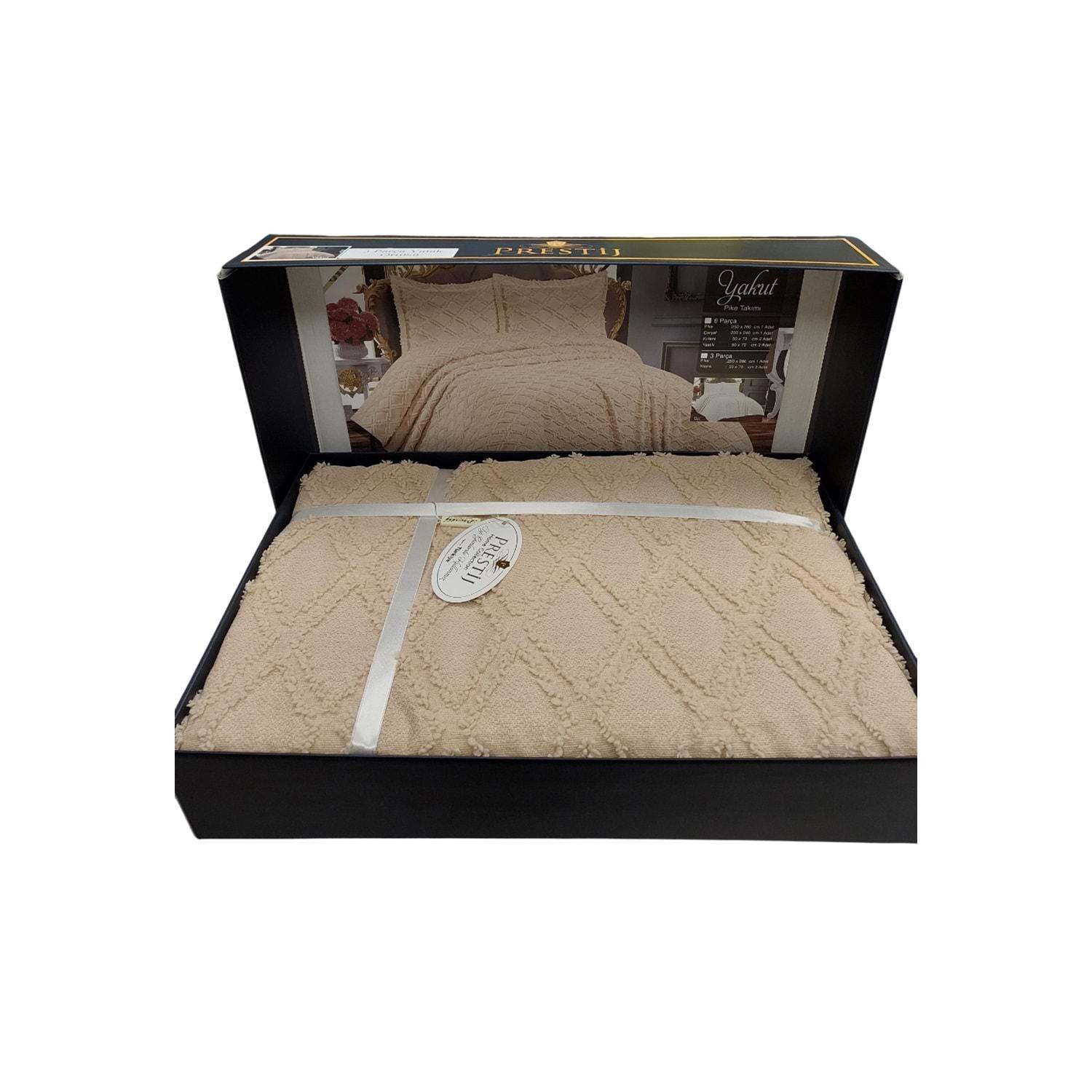 Prestij Puffy Yakut 3 Parça Çift Kişilik Yatak Örtüsü, Pike Örtüsü (250x260)-Kahve