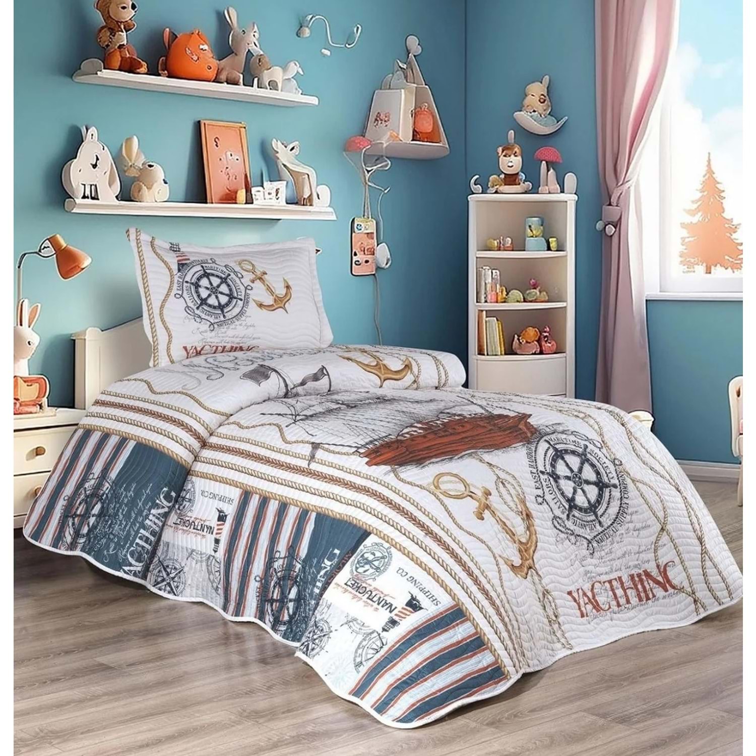 Belenay Dijital -Gemici- Tek Kişilik Kapitone Yatak Örtüsü (175x240)