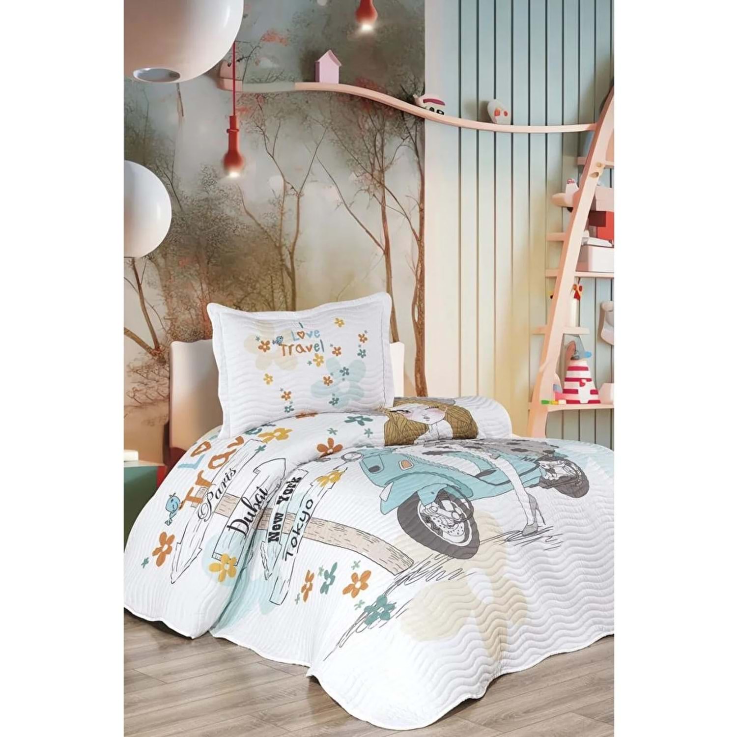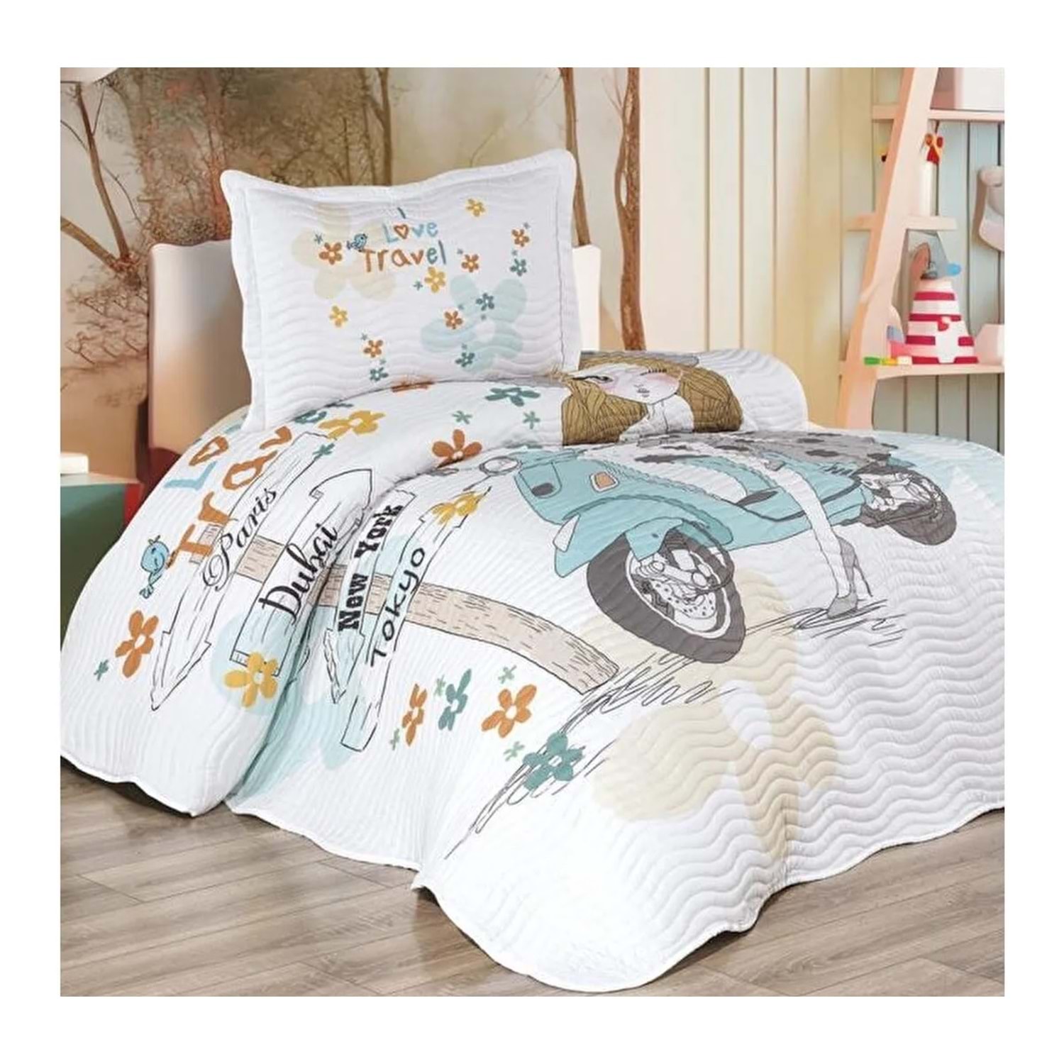 Belenay Dijital -Gezgin Kız v1- Tek Kişilik Kapitone Yatak Örtüsü (175x240)