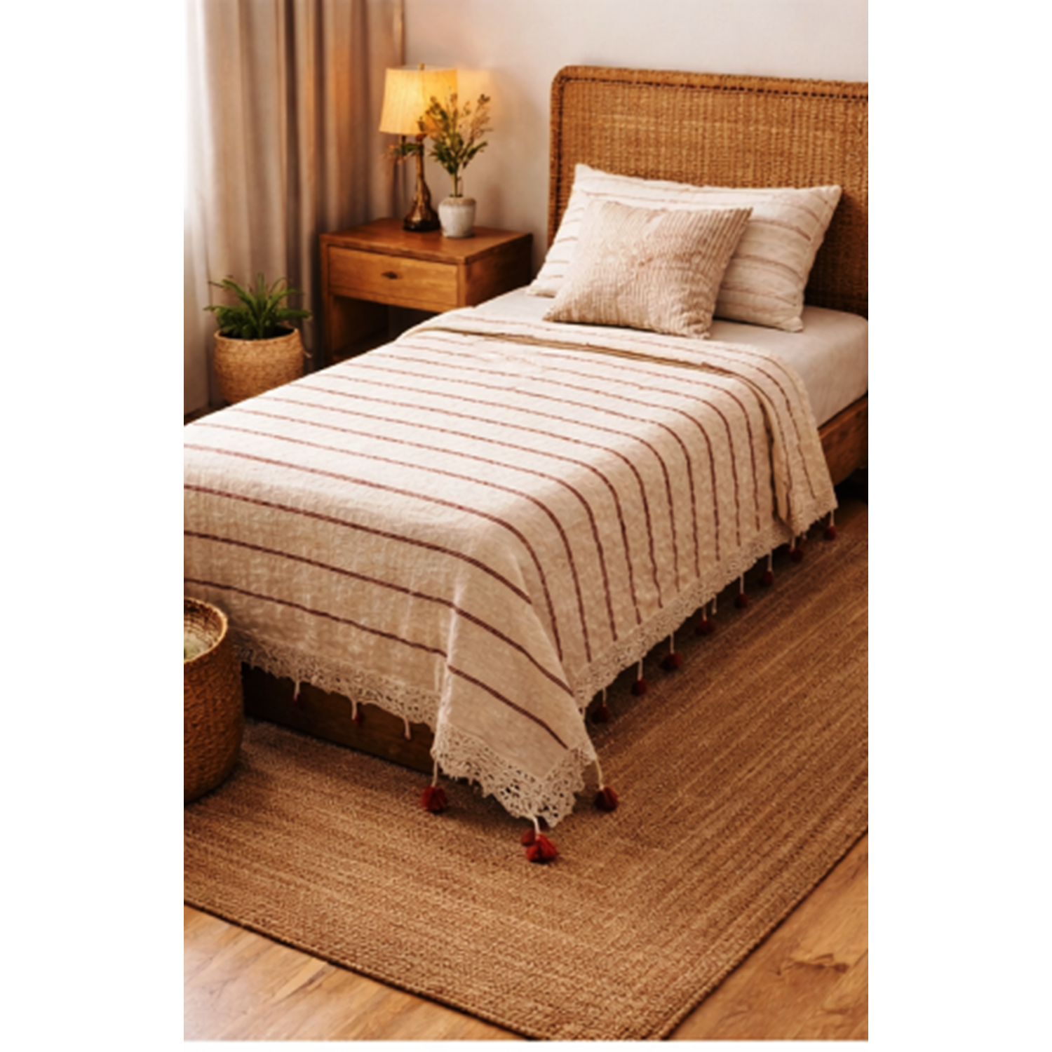 MANDAŞ Şönil El dokuma Tek kişilik Yatak Örtüsü Açık Sarı 2 185*240