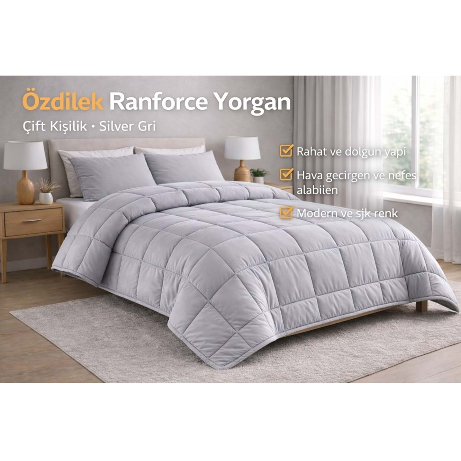 Özdilek Ranforce Pamuk Kumaş Çift Kişilik Silikon Yorgan-Silver Gri